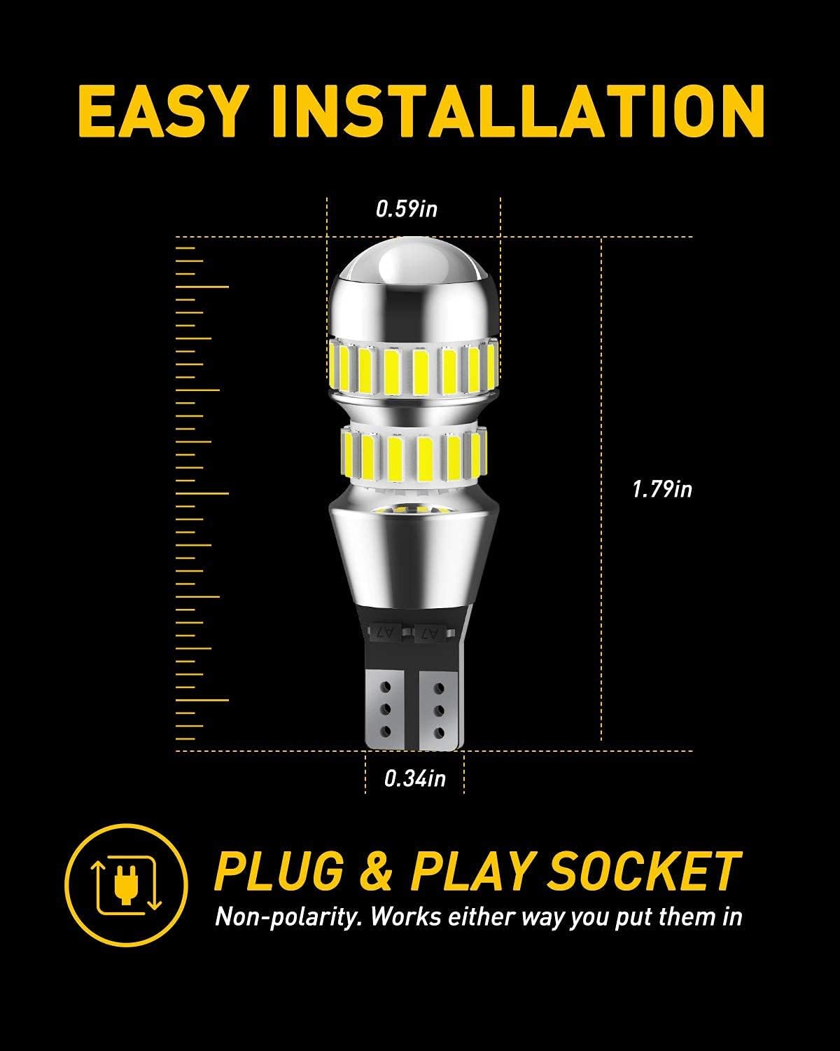 • Application: Used for upgrading the stock back up lights, reverse lights, plug and play direct replacement for 912, 921, 906, 904, 902, 922, W16W, T15, etc socket