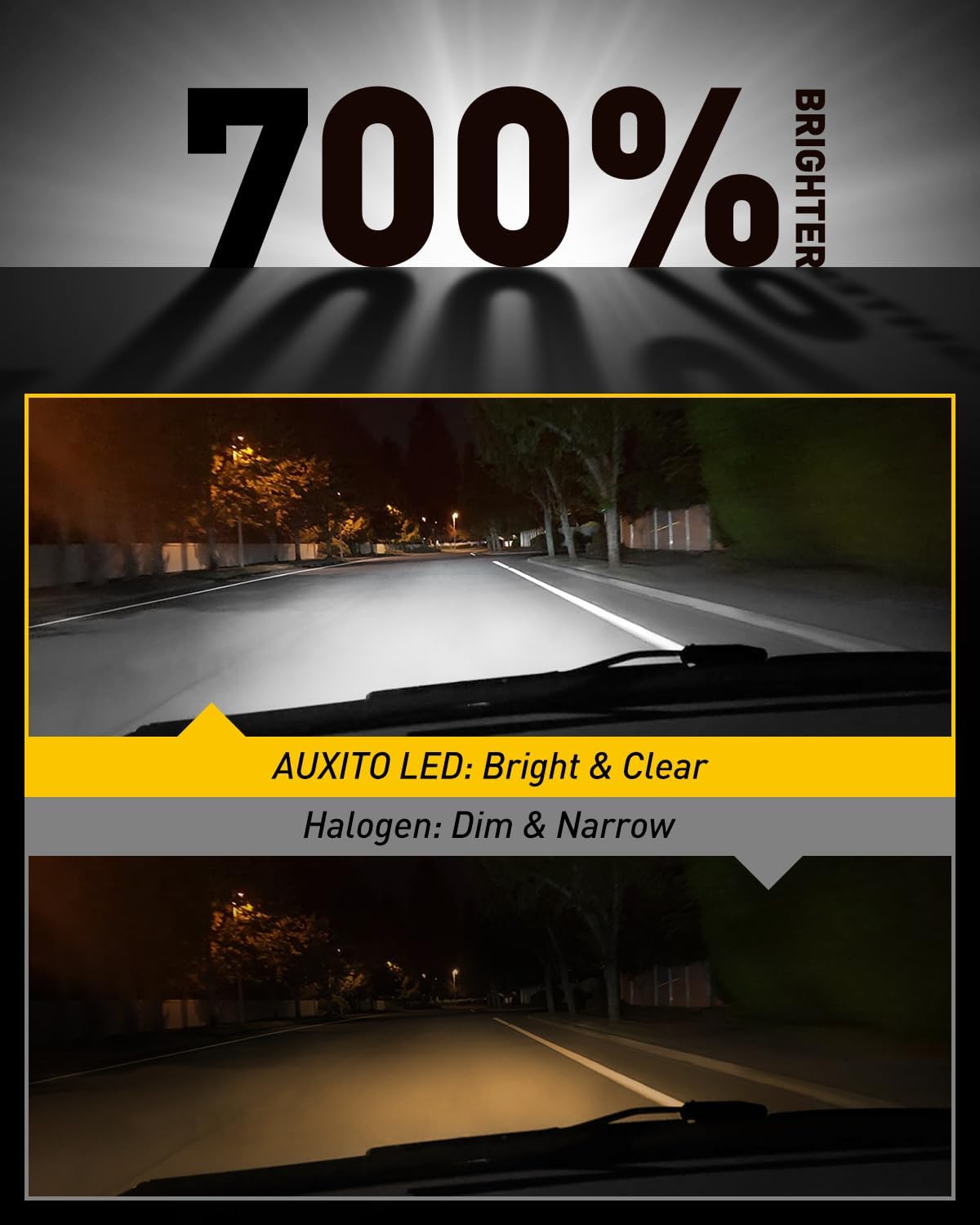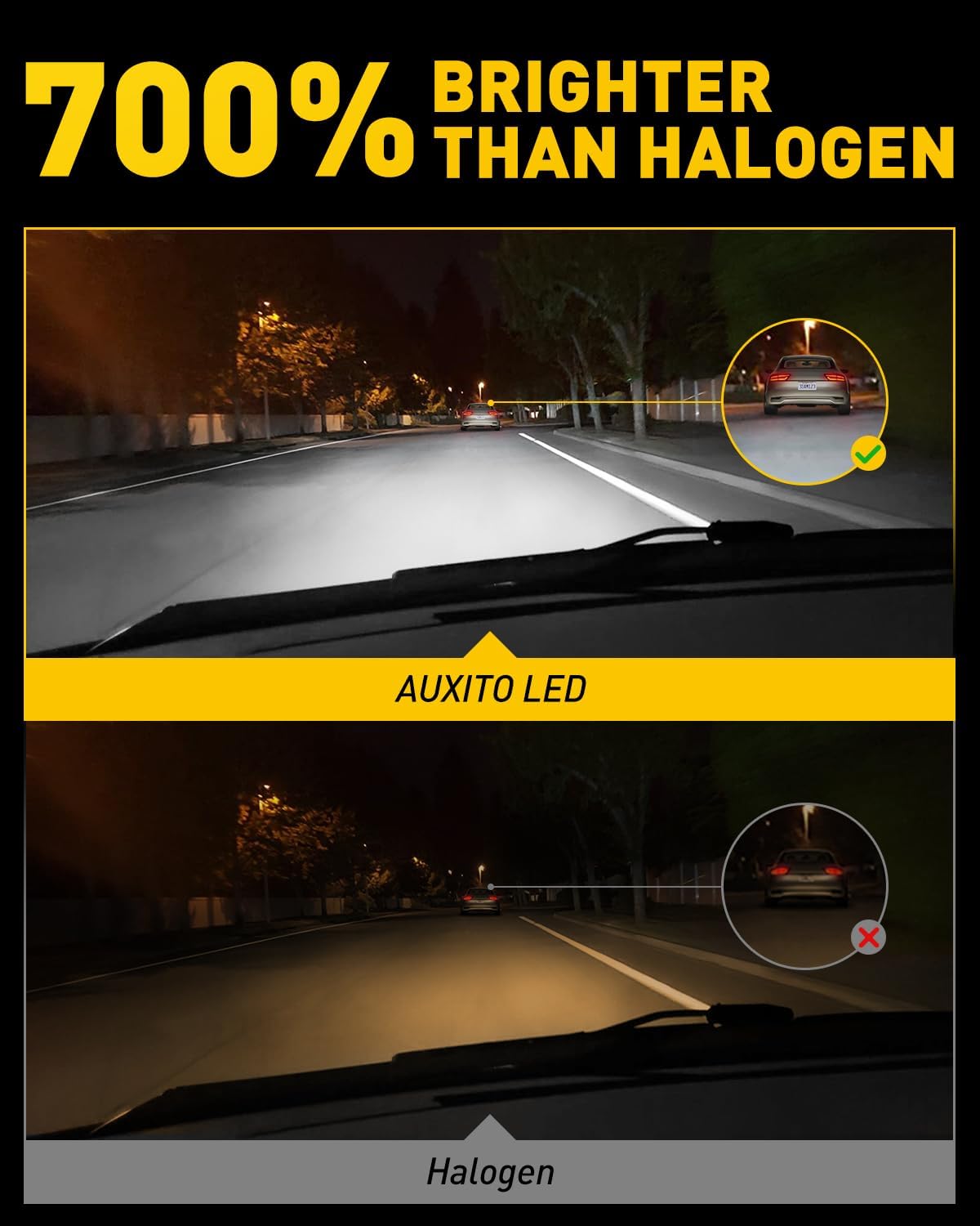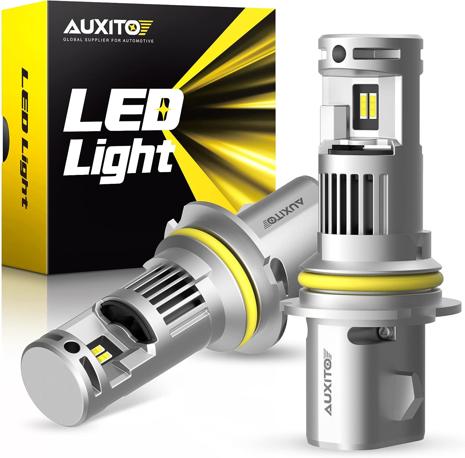 • [ Great Brightness Improved] AUXITO New upgraded H4 LED High/Low beam LED bulbs are 100W per set, providing up to 600% brighter than OEM halogen 9003 bulbs. 6000K cool white and 20,000LM bring you a clear vision when driving