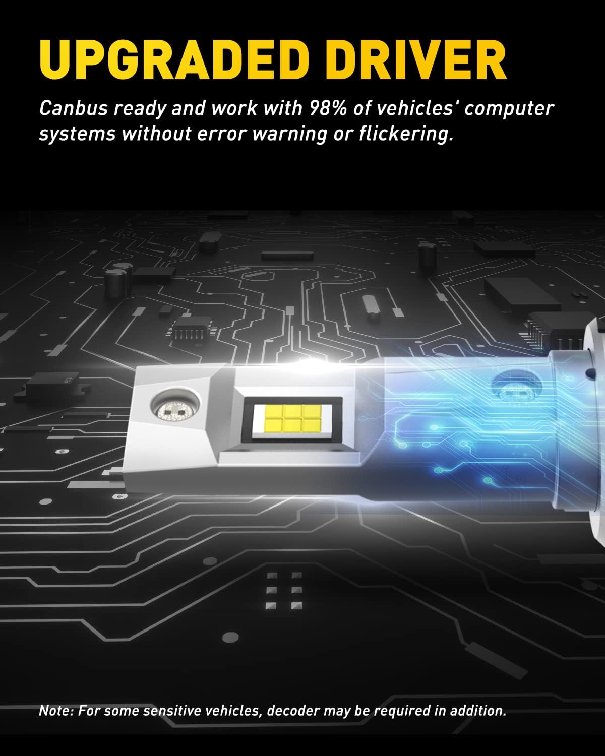 • [ Perfect Beam Pattern] The 0.03 inch ultra-thin base board makes the 9003 Hi/Lo beam bulbs closer to the light-emitting area of the halogen lamp. Latest LED CSP chips spread the light evenly on the road and zero dark zone, which make a safer driving