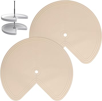 Lazy Susan Shelf Liner, Silicone Lazy Susan Liner for Dual Tier Pie Cut Lazy Susan Organizer, Non-Slip Thermal Protection Lazy Susan Mat 2 PCS (Khaki, 28")