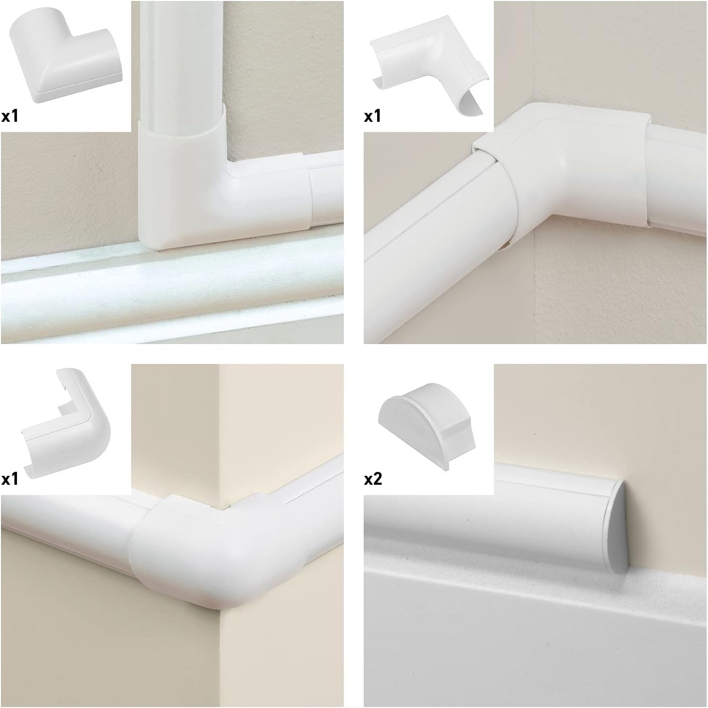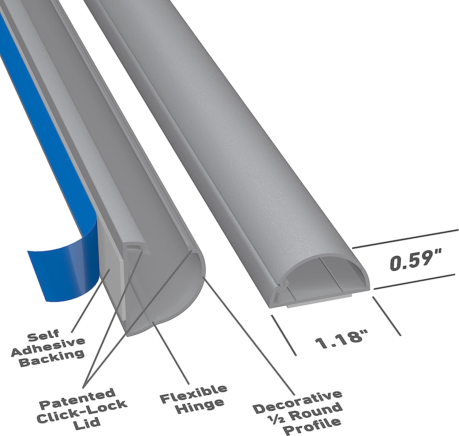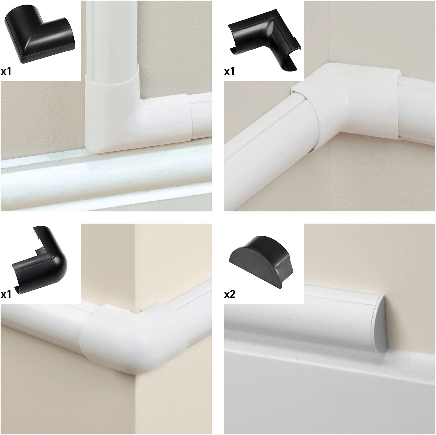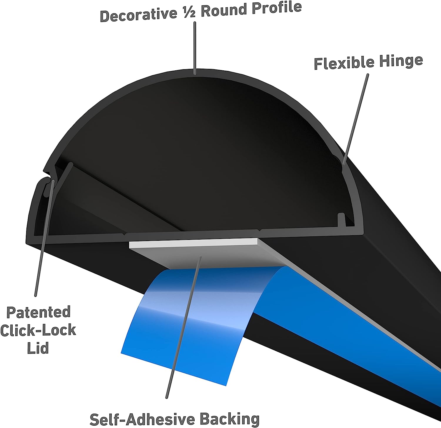 • D-Line Cable Raceway is a great wall cord cover, with D-Line’s half round wire cover blending with décor… and able to appear as the natural top section of baseboards. Compatible cord concealer accessory packs allow the user to hide wires around most popular angles. D-Line raceway bends & tees forgives imprecise cuts or measurements, while connectors & end caps fit securely under cable channel lengths. One-piece design of D-Line half round cable raceway avoids need to cut lid & base separately.