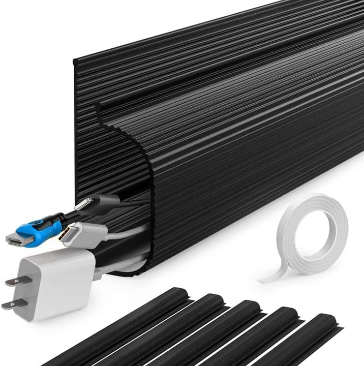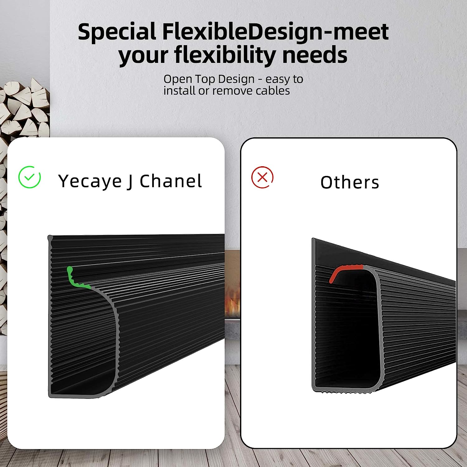 YECAYE Cable Management 94'' J Channel - 6 Pack Cable Raceway, Cord Cover, Under Desk Cable Management, 6X15.7in Large Capacity Cord Cable Organizer Wire Management, Easy to Tape Install, Black