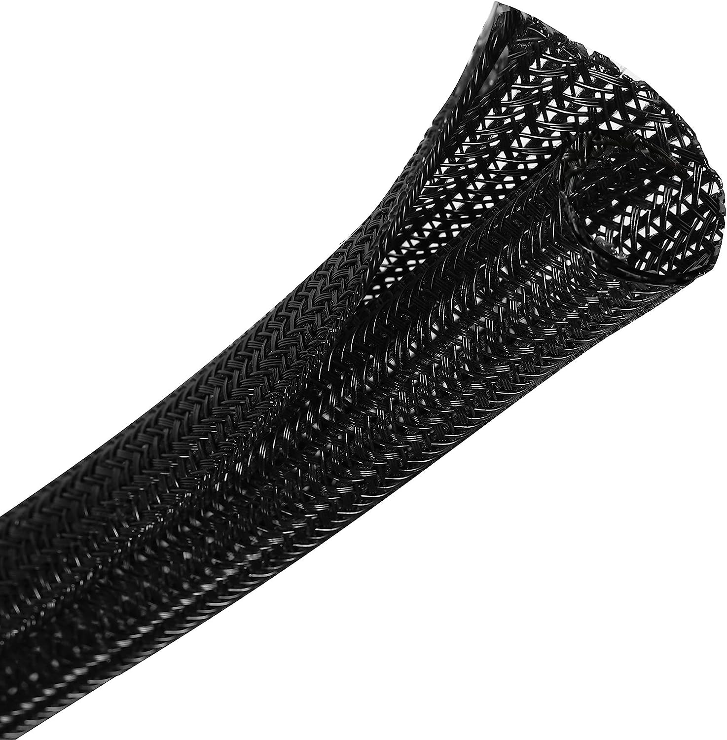 CrocSee 25ft - 1/2 inch Braided Cable Management Sleeve Cord Protector - Self-Wrapping Split Wire Loom for TV/Computer/Home Theater/Engine Bay - Black