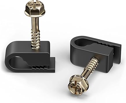 THE CIMPLE CO Wire Clips, Single Cable Wall Clip, Coaxial, Cat6, Electrical Wire, Ethernet, 1/4 in (6 mm) Screw Fastener, 100 Pack, Black