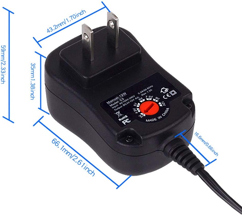 DC Output: DC 3V 4.5V 5V 6V 7.5V 9V 12V (3-12V adjustment) Max:1.2A