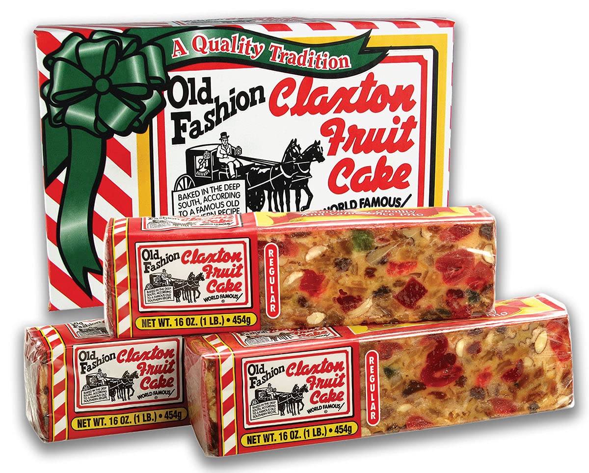 Chocked full of nature's finest fruits and nuts, Claxton Fruit Cake has enjoyed a worldwide reputation for quality and value for over 110 years. Our Regular recipe cakes feature the original Claxton blend of Raisins, Candied Pineapple, Walnuts, Glace Cherries, Candied Lemon and Orange Peel, Pecans, Candied Papaya, and Almonds, folded into a golden batter with imitation rum flavor added. Our popular 3-1 Lb. package contains three individually wrapped 16-oz. Claxton Fruit Cakes. Perfect for slicing and serving. Also makes a wonderful holiday gift.