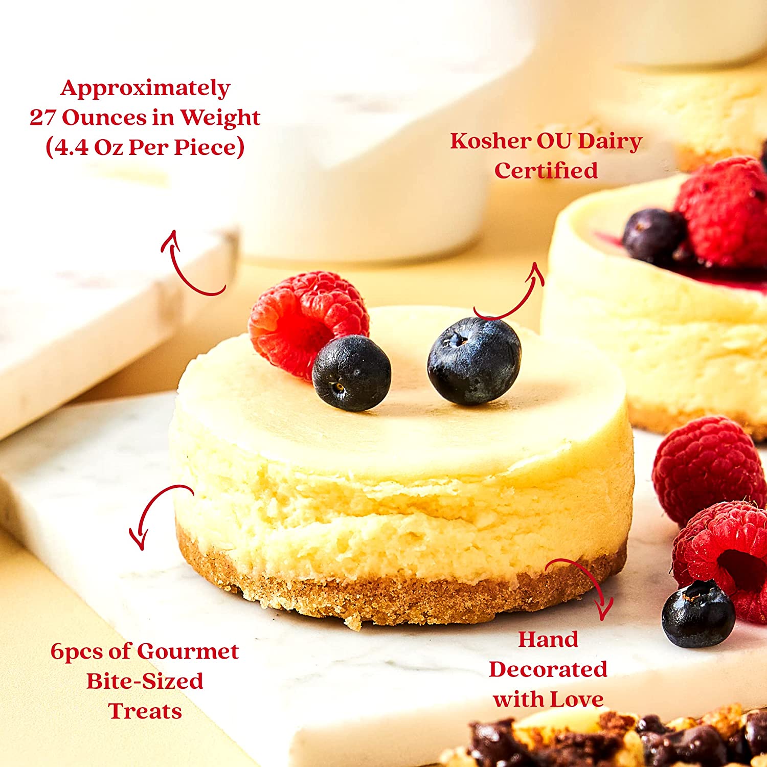 • WHAT YOU WILL RECEIVE: It comes with a total of 6 mini cheesecakes carefully wrapped to hold shape during delivery. The dessert will arrive at least partially frozen and can be refrozen in the original packaging for up to 6 months.