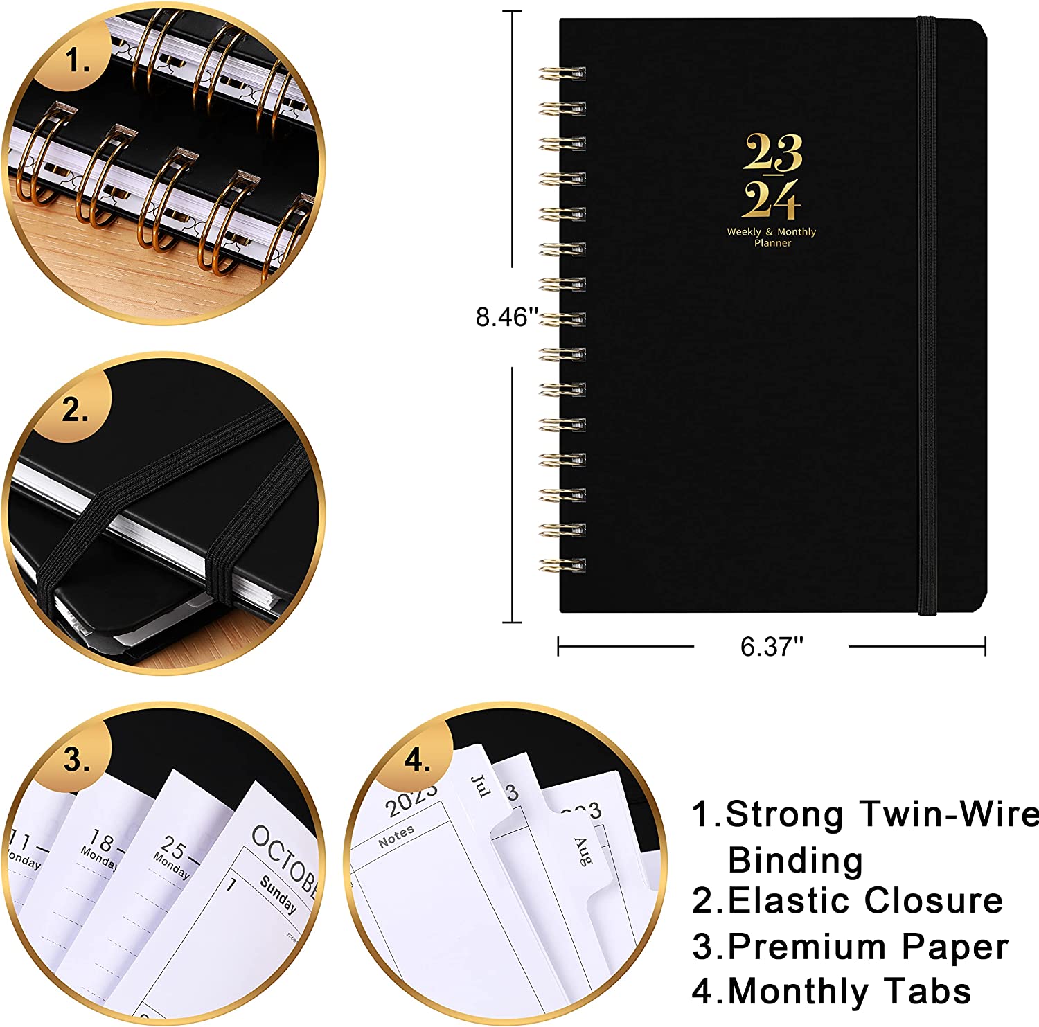 • 2023-2024 PLANNER – This planner 2023-2024 is from July 2023 to Jun 2024, covering 12 months of monthly and weekly pages for an easy year-round planning. Premium black hardcover, twin-wire binding and metal lay-flat spiral planner gives excellent texture, with classic and stylish combinations of appearance.