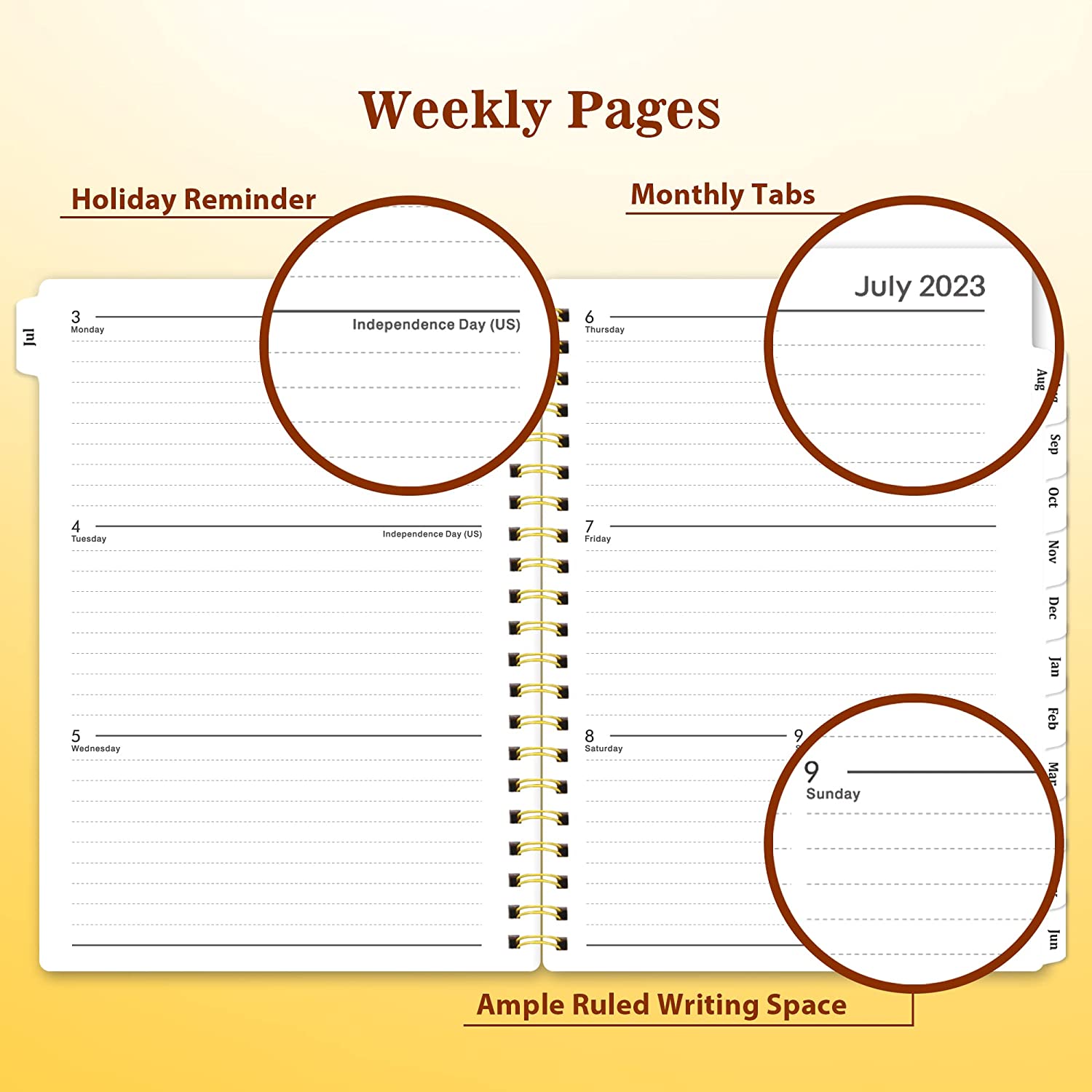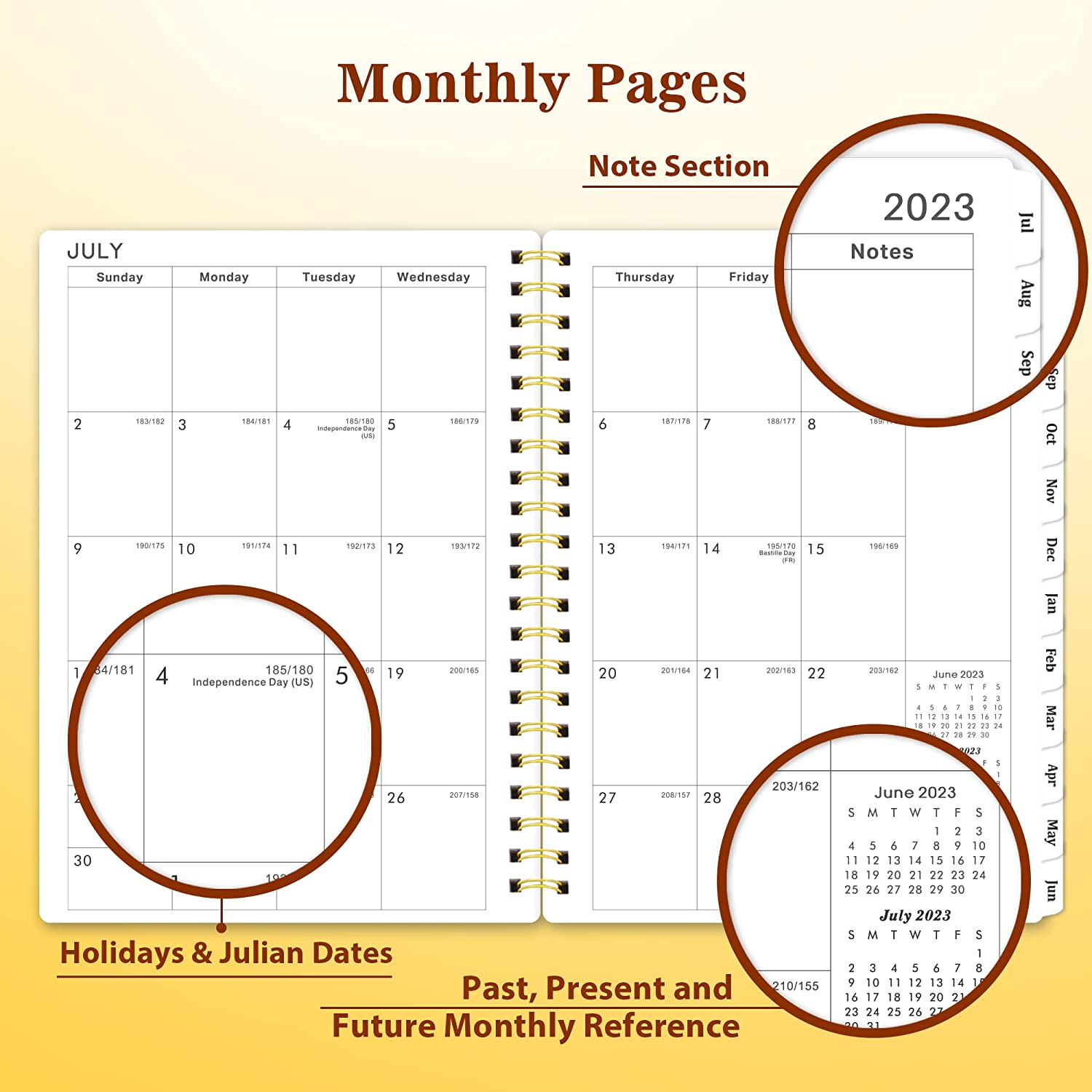 • ✔ OVERVIEW - This planner 2023-2024 is from July 2023 - June 2024, 6.25" x 8.3" (A5 Size), featuring 12 months of monthly and weekly pages for easy year-round planning. Premium quality covers and twin-wire binding, metal lay-flat spiral binding, excellent texture, with classic and stylish combinations of appearance.