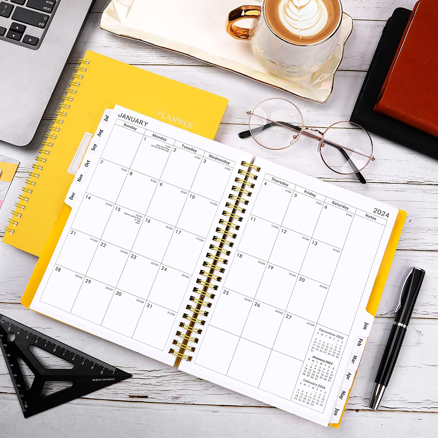 • ✔ MONTHLY - Each monthly spread of this planner 2023-2024 contains an overview of the month and a notes section. Durable coated tabbed dividers are long lasting and make accessing information a breeze.
