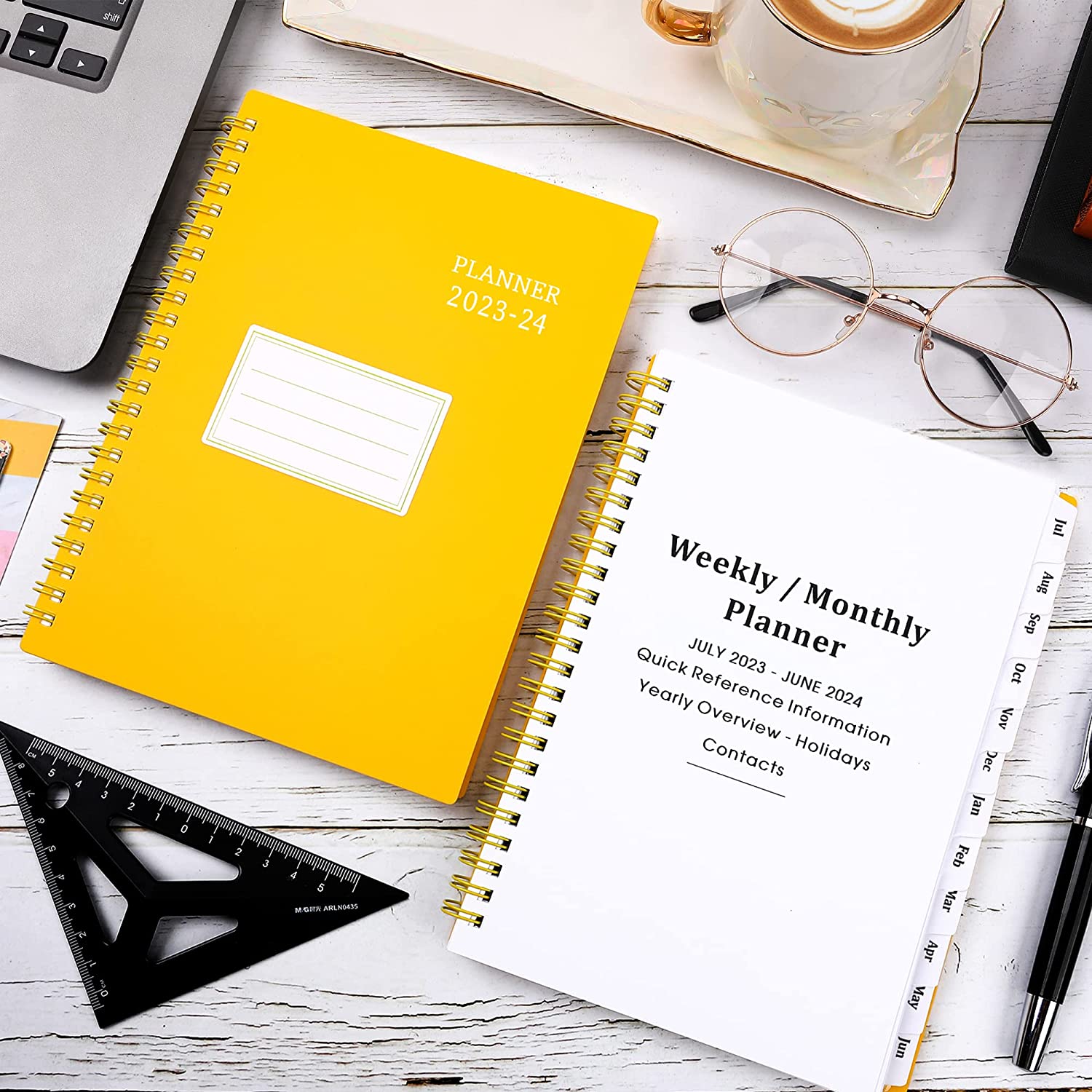 • ✔ MONTHLY - Each monthly spread of this planner 2023-2024 contains an overview of the month and a notes section. Durable coated tabbed dividers are long lasting and make accessing information a breeze.
