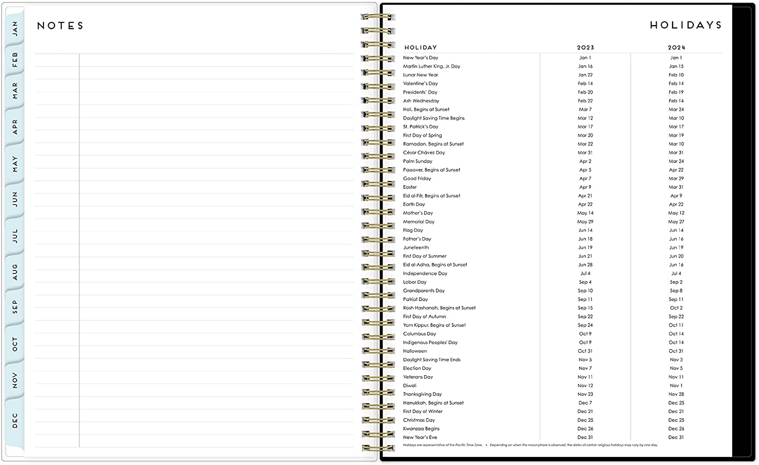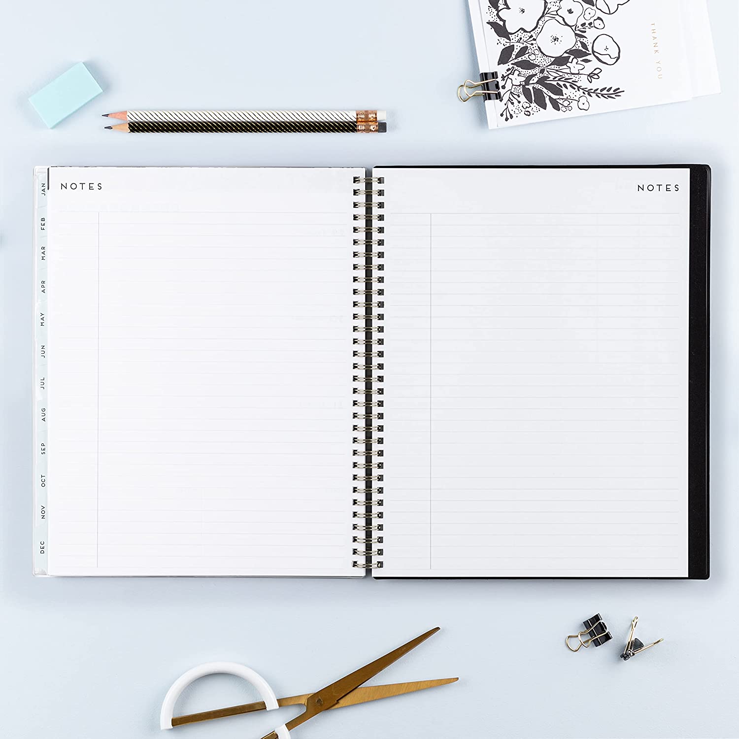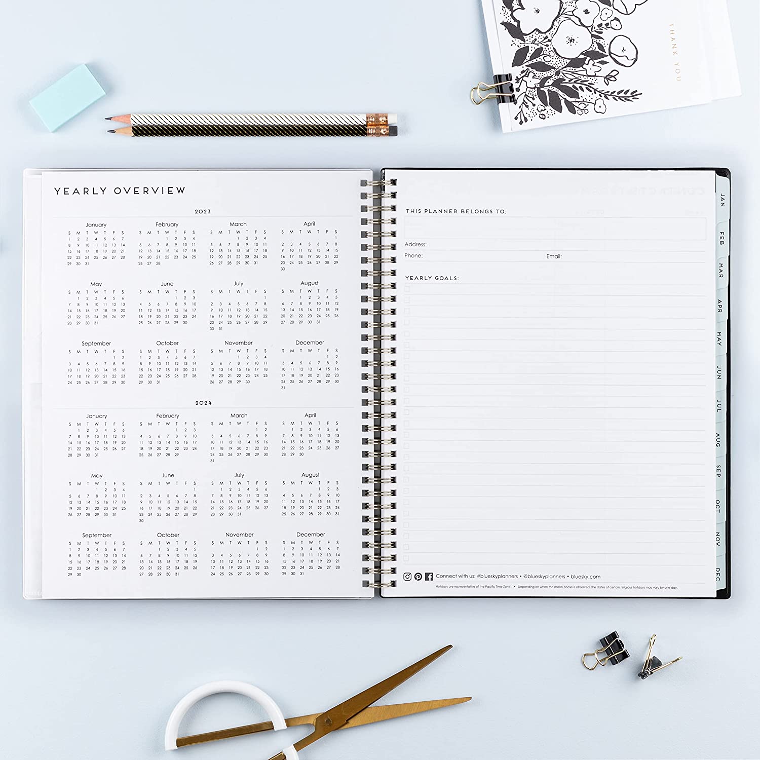 Plan your year in style with the beautiful florals and bold colors of the 2023 calendar year Baccara Dark collection. This stylish CYO (create your own) cover planner will keep you organized everywhere you go. Add in your favorite photos, sentiments, notes or memories to the clear cover pocket, and stay organized with dated monthly pages inside for easy scheduling. Simple page designs add a touch of sophistication and offer plenty of room for all of your important information. Designed with practicality and ease of use in mind, this floral agenda's monthly calendar tabs allow for easy access to each month’s plans while weekly views offer ample writing space for detailing each day. High quality white paper provides clean writing space for jotting down your appointments, to-dos and reminders. Use this dated planner to keep track of your appointments, and to write down notes and ideas in one place. Durable coated tabbed dividers are long lasting and make accessing information a breeze. Premium quality covers and twin-wire binding provide reliable durability for daily use. Stay on track throughout the year with this 8.5 x 11 planner dated January 2023 - December 2023. Mix and match with other Baccara Dark Collection planning products from Blue Sky to organize your daily life.