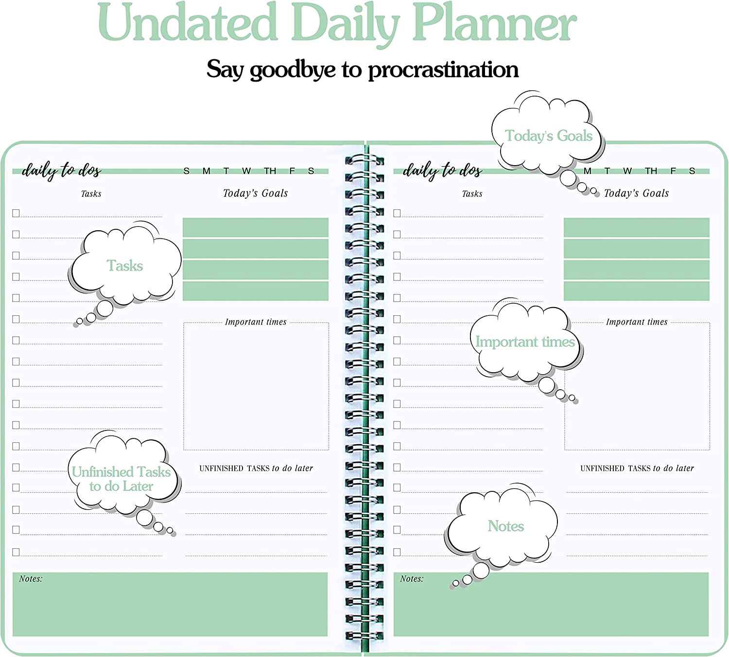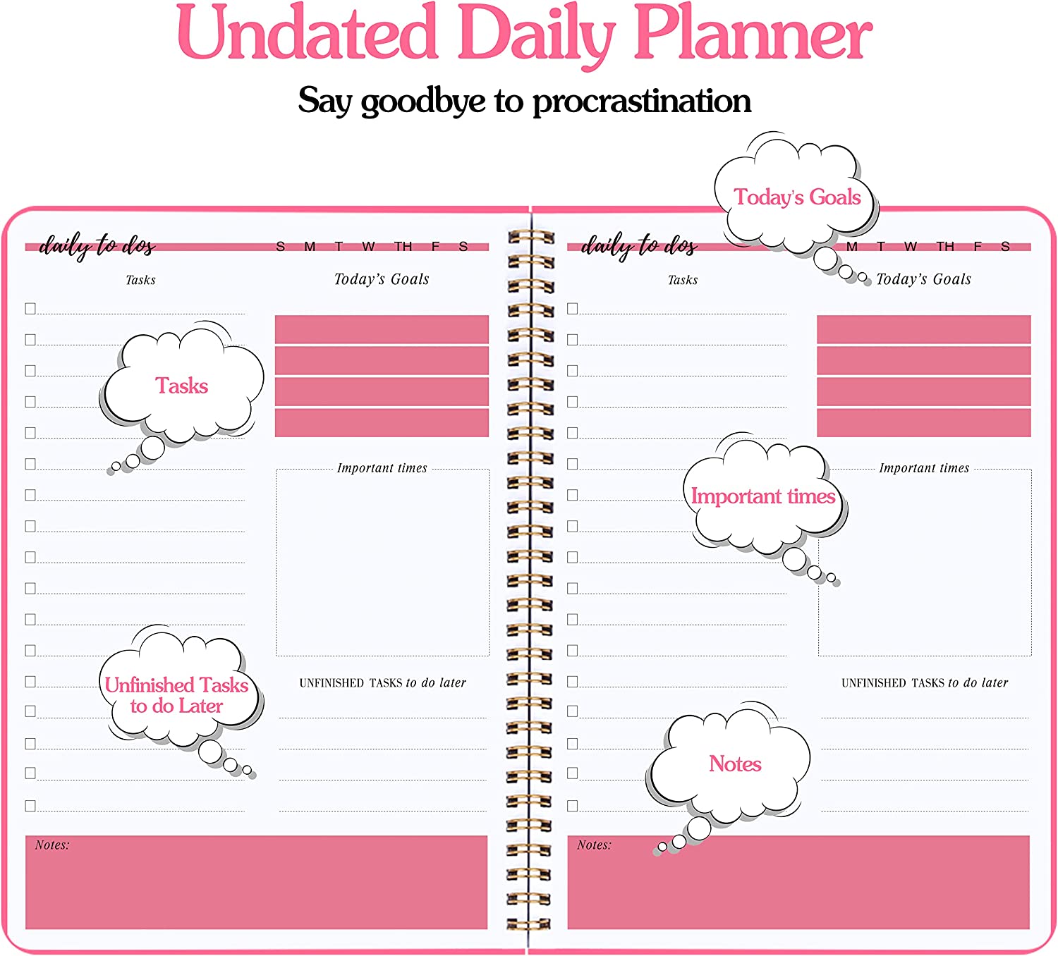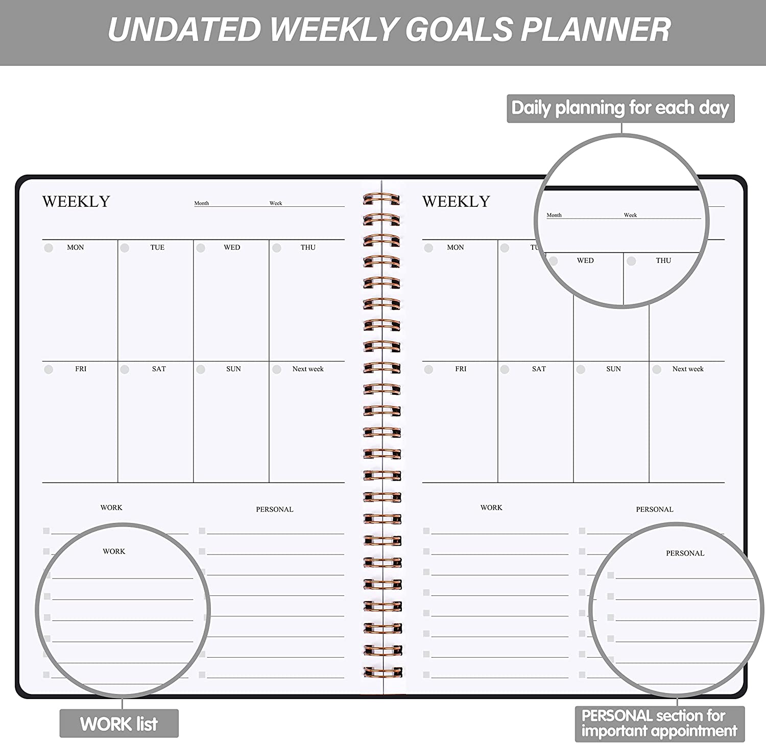 Undated Weekly Planner- Weekly Goals Notebook, A5 To Do List Planner with Spiral Binding, Weekly Goal Planner, 5.7 x 8.0 inches