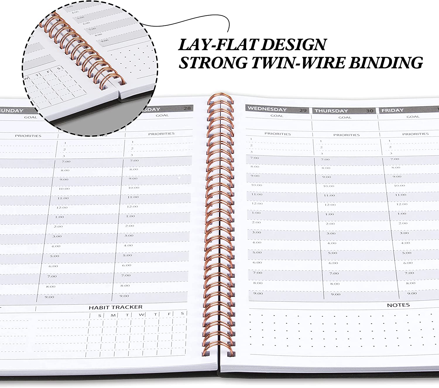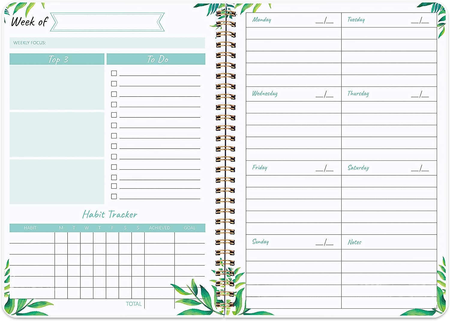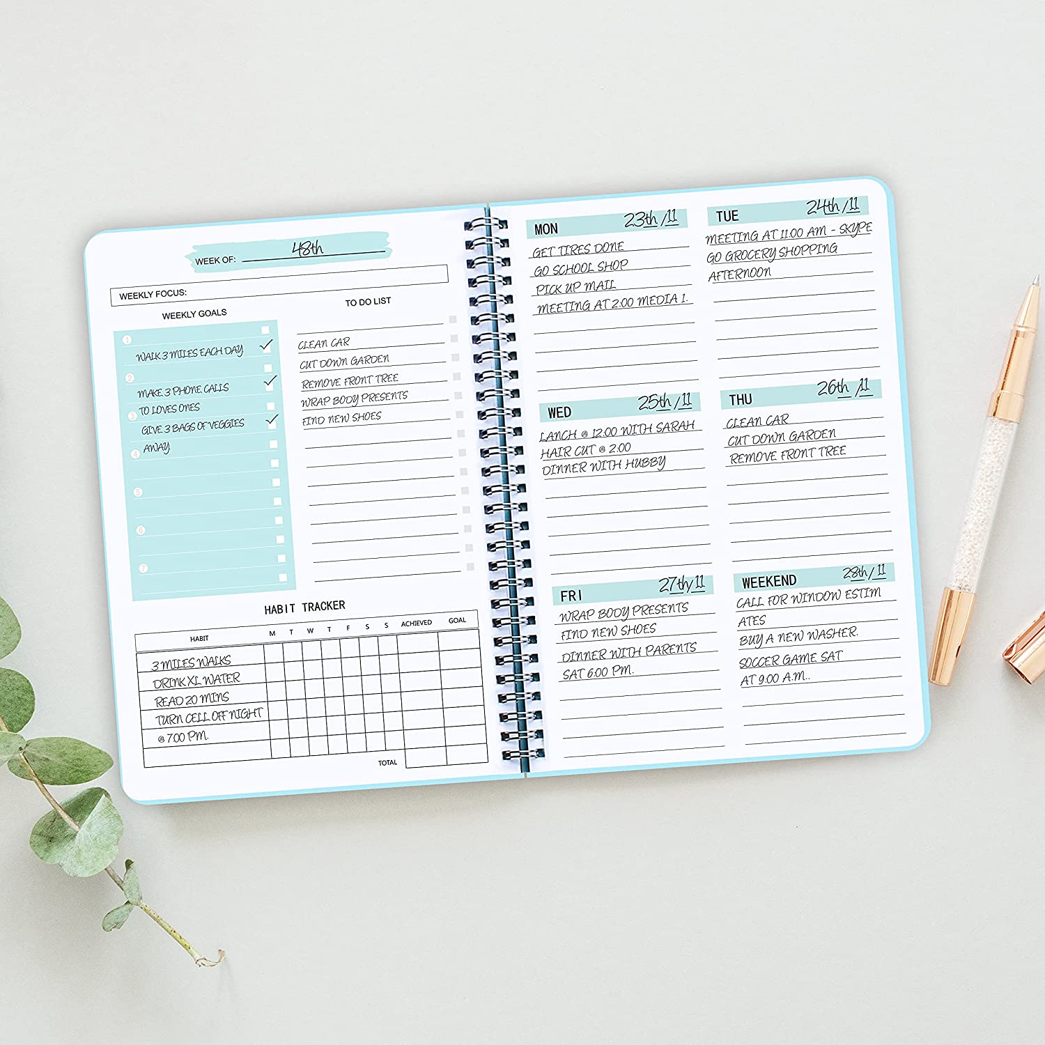 Undated Weekly Planner- Weekly Goals Notebook, A5 To Do List Planner with Spiral Binding, Weekly Goal Planner, 5.7 x 8.0 inches
