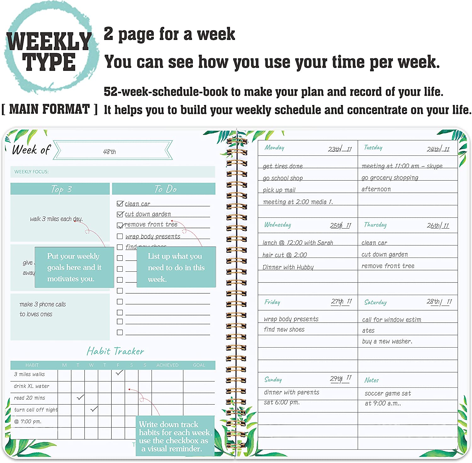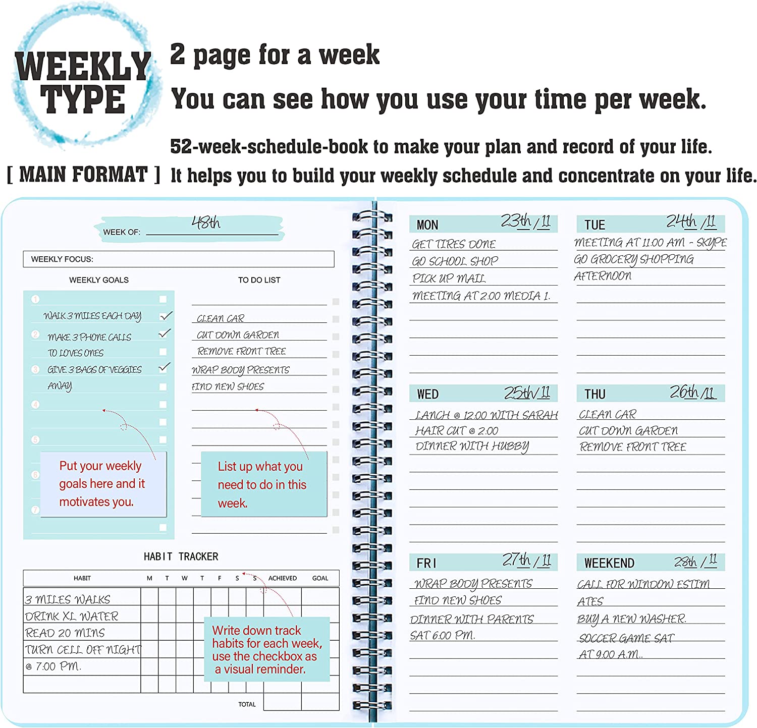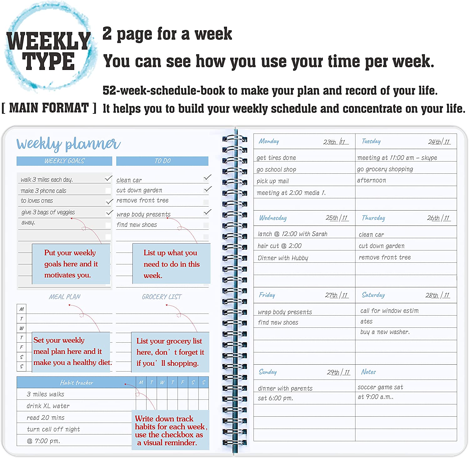 • 52 Weeks Undated Planner:Write down and prioritize your Weekly goals & to do list and then assign tasks to each day for maximum efficiency. No guilt if you miss a week.