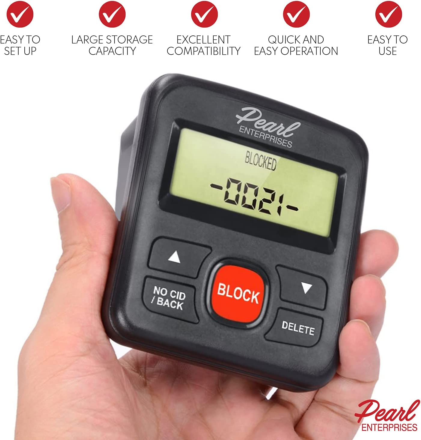 Easily create a blocklist of your own by pressing the red BLOCK button when an unknown number is received to block that number permanently and automatically add it to your list. Also automatically blocks all unknown calls when feature is switched on. Features non-volatile memory to retain blocked numbers in memory even when unplugged.