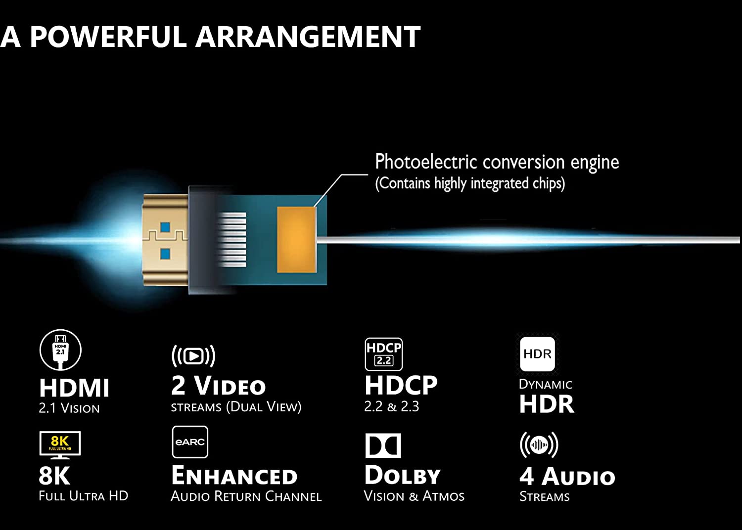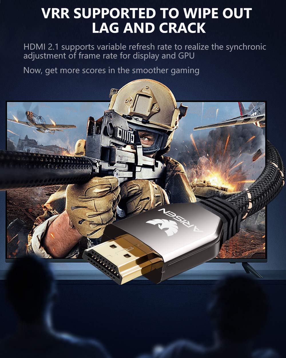 • MORE THAN EXPECTED: This ARISEN HDMI Cable 2.1 truly supports HD D olby 7.1 and D olby Atmos, enhances every moment values for depth, detail, brightness, Variable Refresh Rate (VRR) , Quick Frame Transport, and Enhanced Audio Return Channel (eARC). To experience D olby Vision fully, you'll need every link in your viewing chain to be D olby Vision compatible, from streaming devices like an Apple TV 4K to your A/V receiver and the HDMI cable that brings them together.