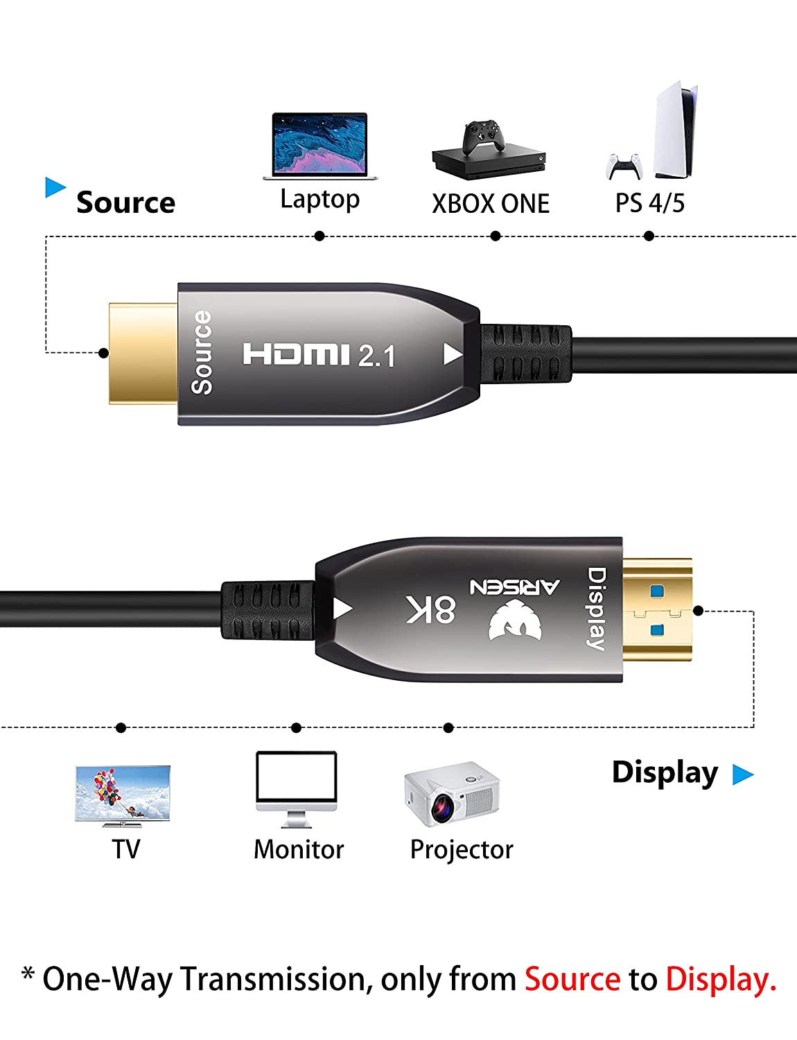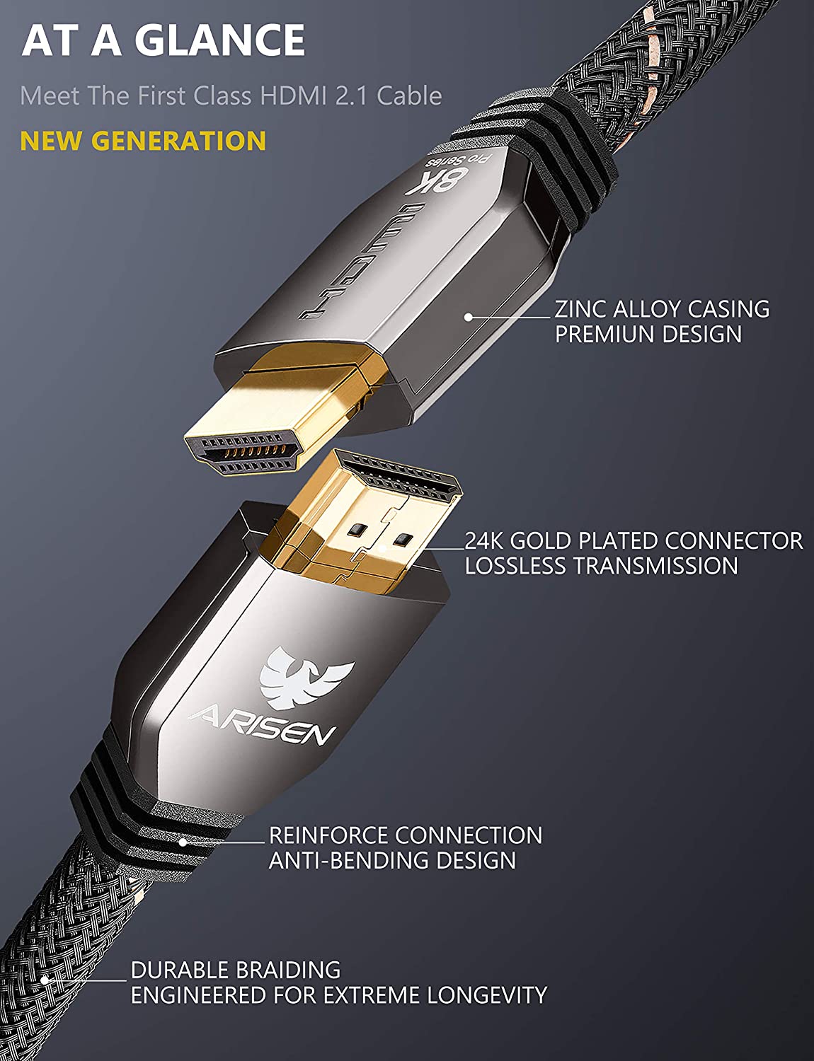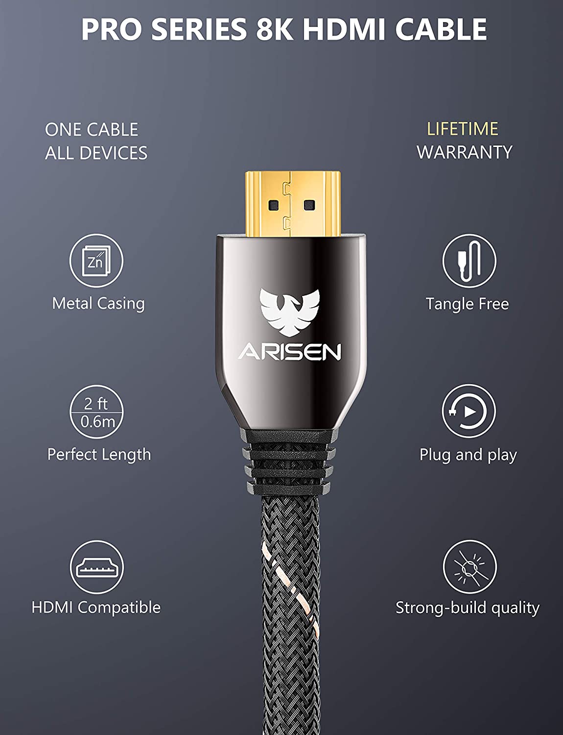 • WIDE COMPATIBILITY: The ARISEN HDMI Cable 8K perfectly compatible with Apple TV, LG TV, Samsung QLED TV, Fire TV, Roku, Playstation, Sony 8K UHD TV, Blu-Ray, Laptop, PC, DVD, PS3, PS4 Pro, PS5, Xbox 360, Xbox one S and Wii U, Tivo, Vizio, Blu-ray player, Projector, etc. Backward compatible with earlier versions of HDMI and can be used with existing HDMI devices. A LIFETIME Warranty provided directly by ARISEN, please be free to contact us.