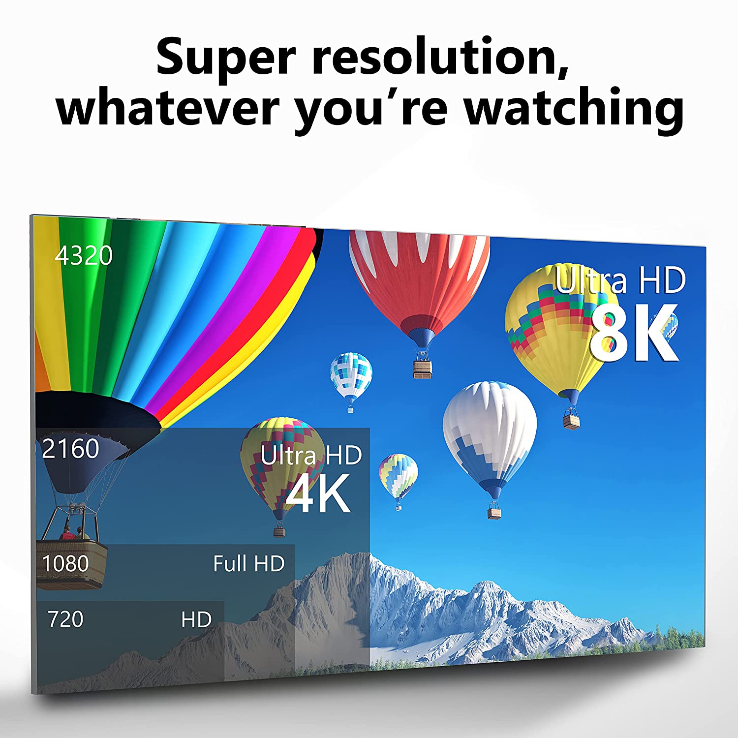 • ADVANCED HIGH SPEED: This ultra-high-speed HDMI 8K Cable provides a high-speed 48Gbps solution for better picture and sound. Features 2 gold-plated connectors with anti-oxidation performance and excellent conductivity for super-fast transfer and superior connection. HDMI 2.1 port brings 48gbps transmission quantity, and super clarity for view without any lagging so you never miss a beat. Besides, the cable also features very low EMI emissions.