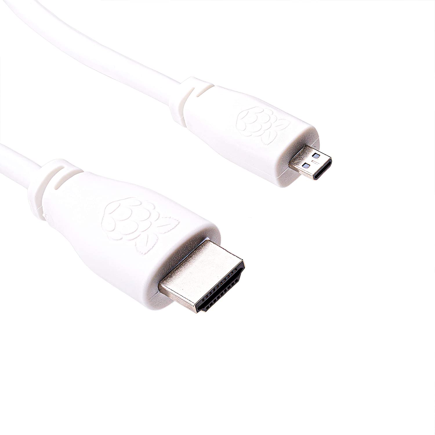 The official Raspberry Pi micro HDMI to HDMI cable designed for the Raspberry Pi 4 computer.