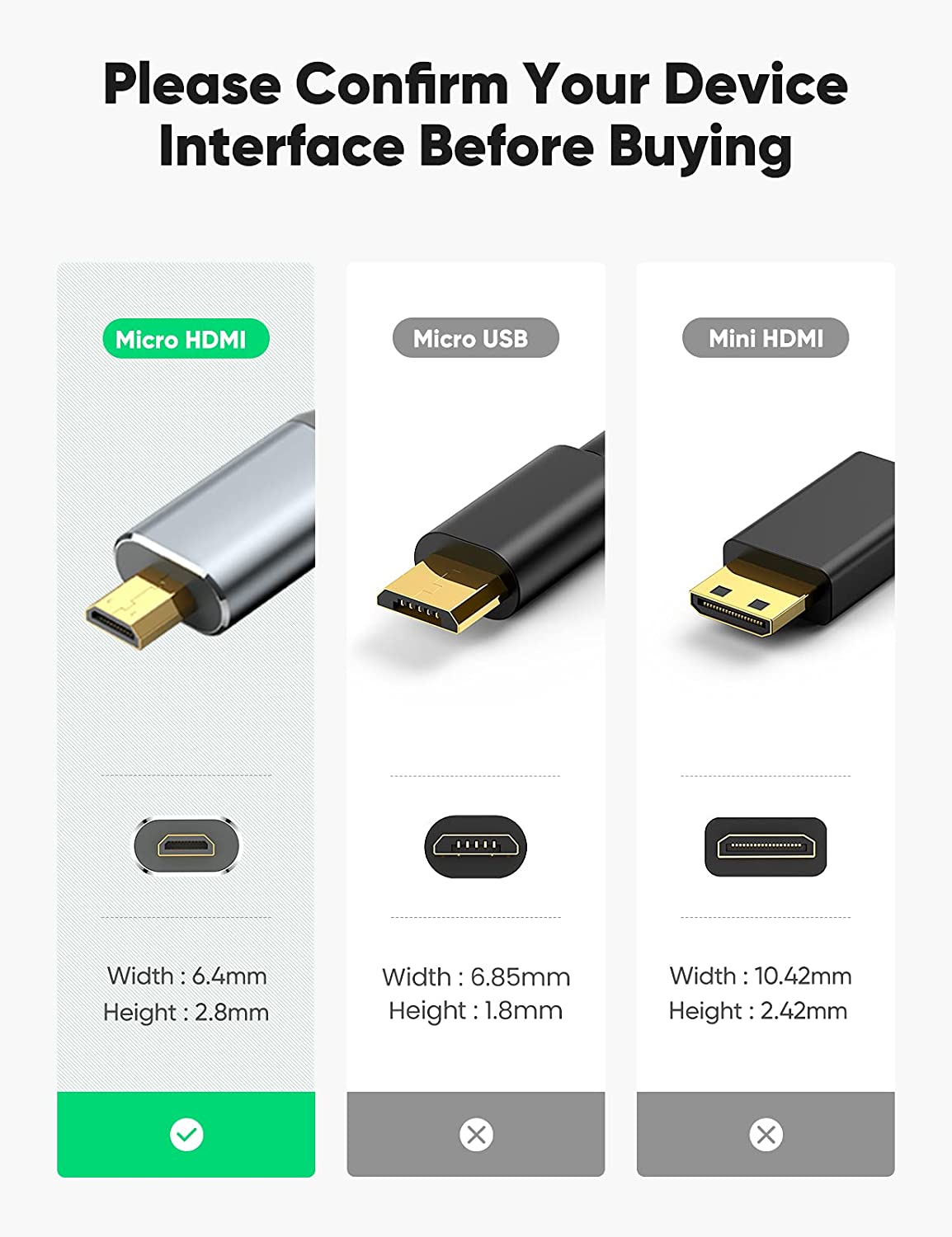 • 💖【Micro HDMI Cable-4K@60Hz】Our Micro HDMI to HDMI Cable Adapter Support 4K@60Hz, 2K@165HZ Full HD resolution, supports 3D Technology, 18Gbps and and Audio Return Channel. Oldboytech Micro HDMI to standard HDMI cord delivers both high-definition video and uncompressed multichannel digital audio