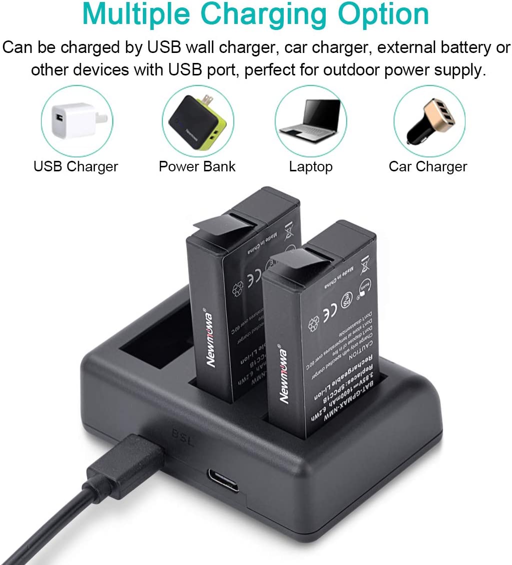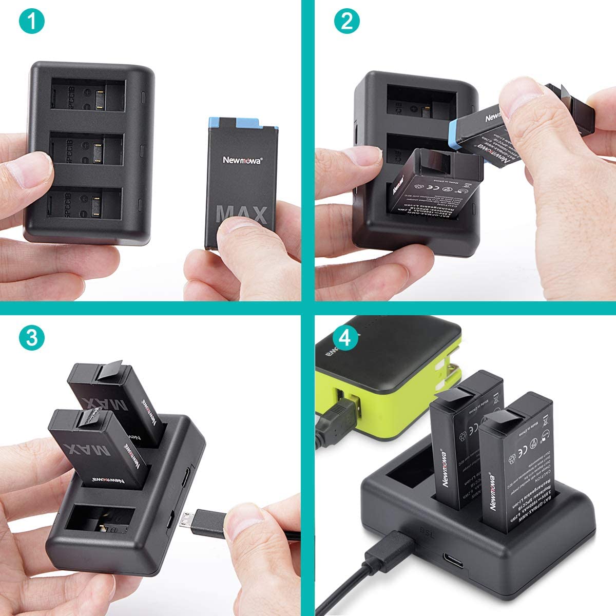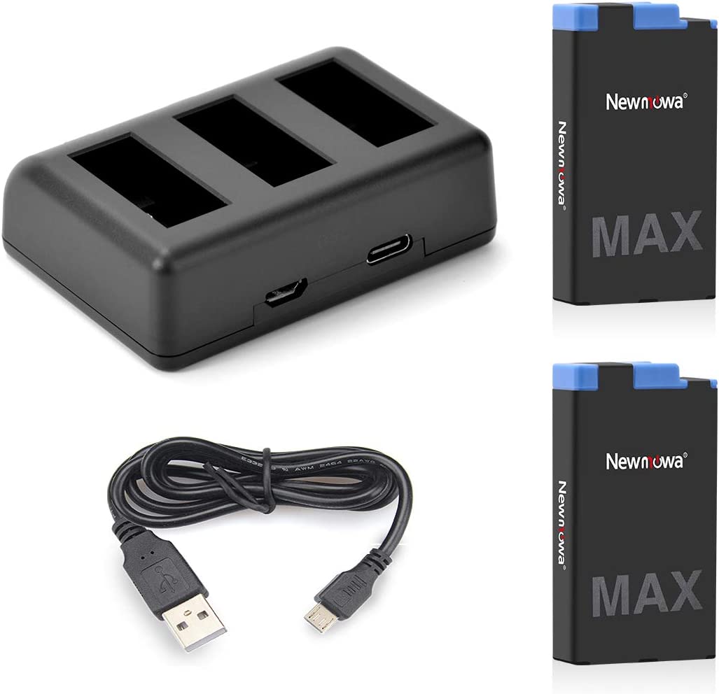 Newmowa Replacement Battery (2-Pack) and Rapid 3-Channel Charger for GoPro MAX (Fully Compatible)