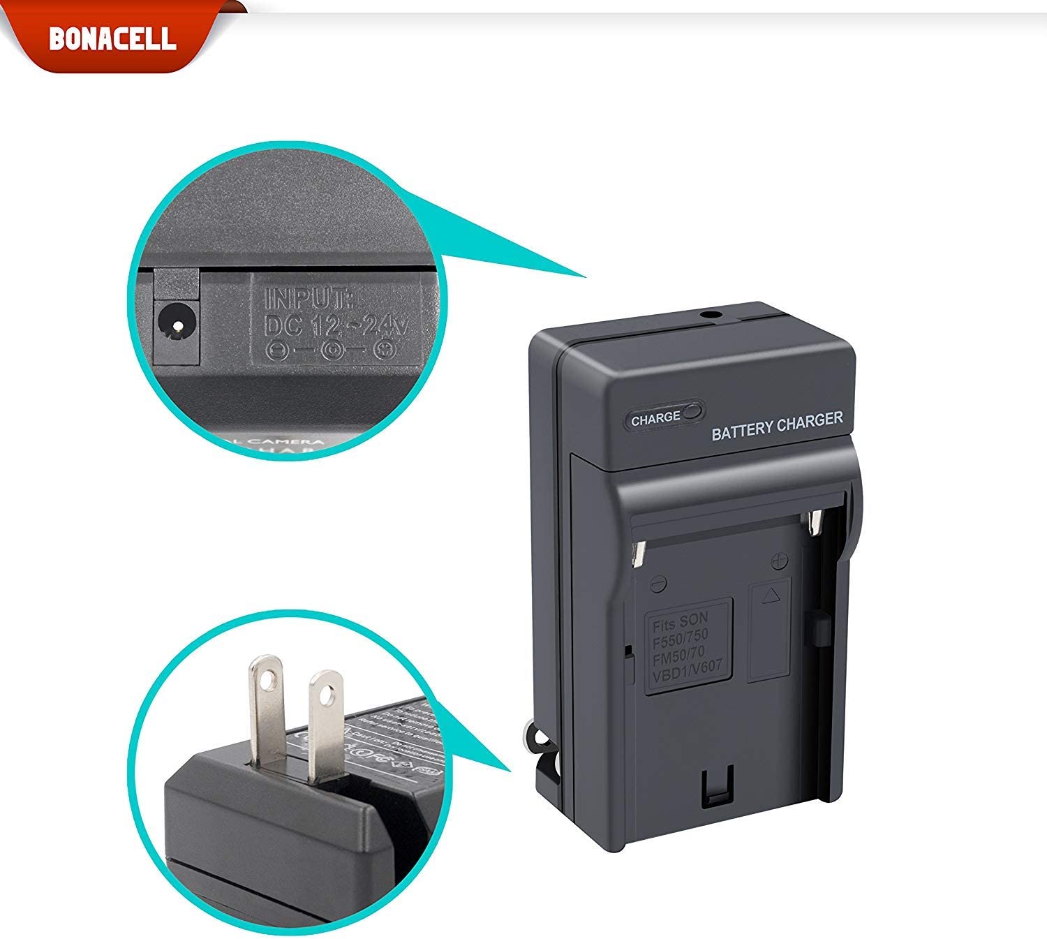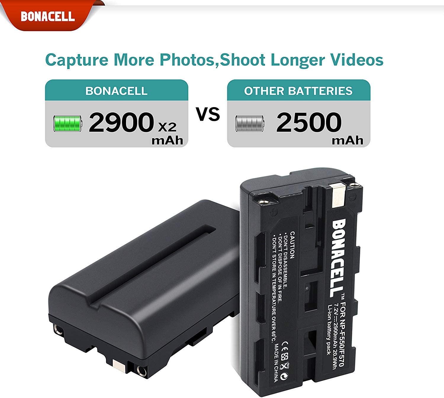 Bonacell NP-F550/ NP-F570 Battery 2900mAh 2 Pack and Charger Kit Compatible with Sony CCD-RV100, CCD-RV200, CCD-SC6, CCD-SC65, CCD-TRV67, DCM-M1, DSC-CD250, DSC-CD400, HVR-M10U, HVR-V1J and More