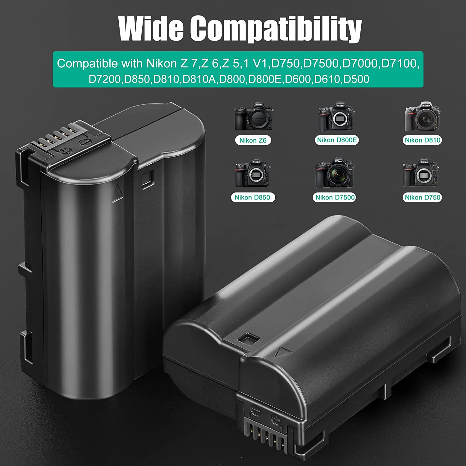 • 📸【Compatible With Nikon Camera Models】Made to the exact specification of Nikon EN-EL15b battery, 100% Compatible with Nikon camera D850, D810, D810A, D800, D800E, D780, D750, D610, D600, D500, D7500, D7200, D7100, D7000, Nikon camera 1 V1, Z7, Z6, Z5.
