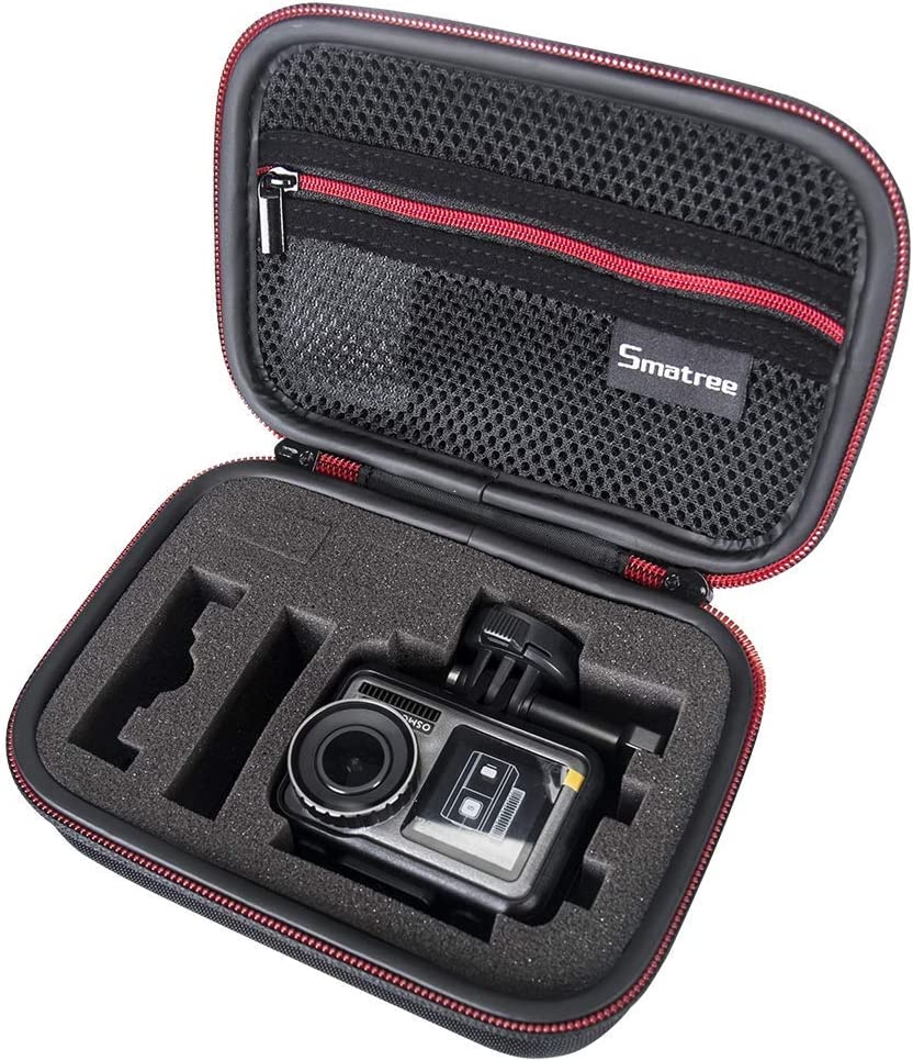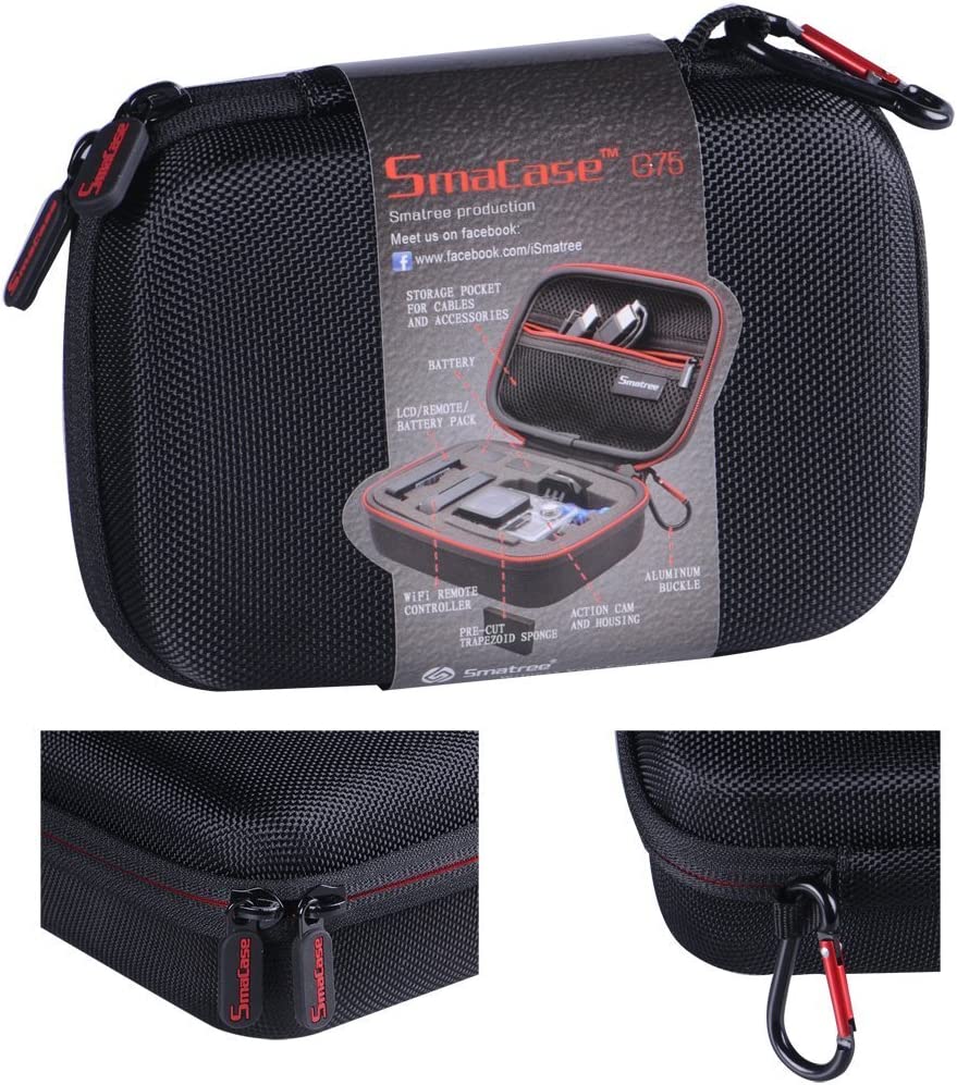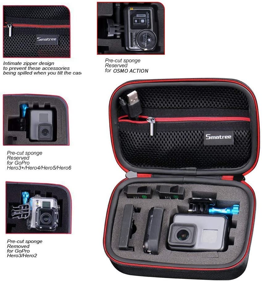 Smatree Carrying Case Compatible for GoPro Hero 8/7/6/5/4/3+/3/2/1/GOPRO HERO (2018)/DJI Osmo Action(Black & Red)-Extra-Small