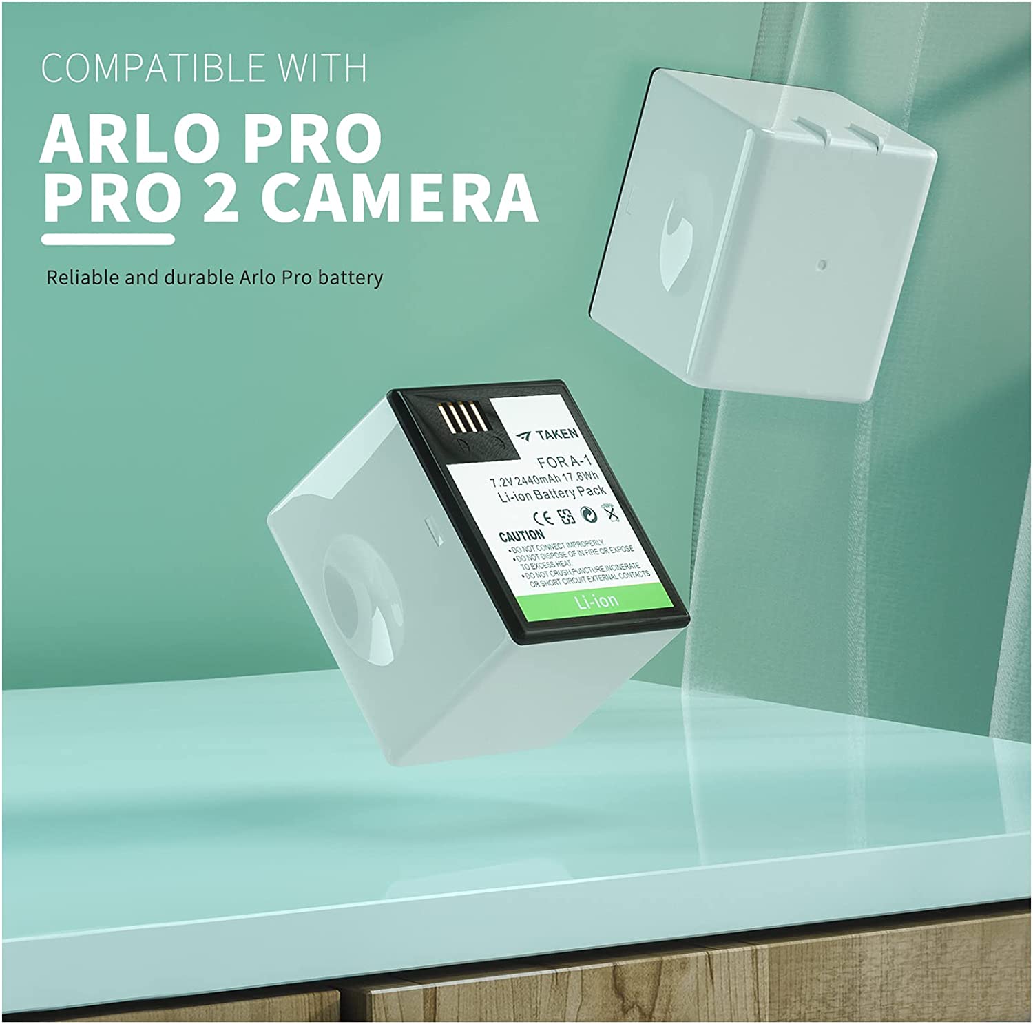• Safety & Security - TAKEN arlo pro battery has FCC CE ROHS safety certified and comes with built-in over-charge, over-discharge, over-voltage, over-current and over-heating protections.