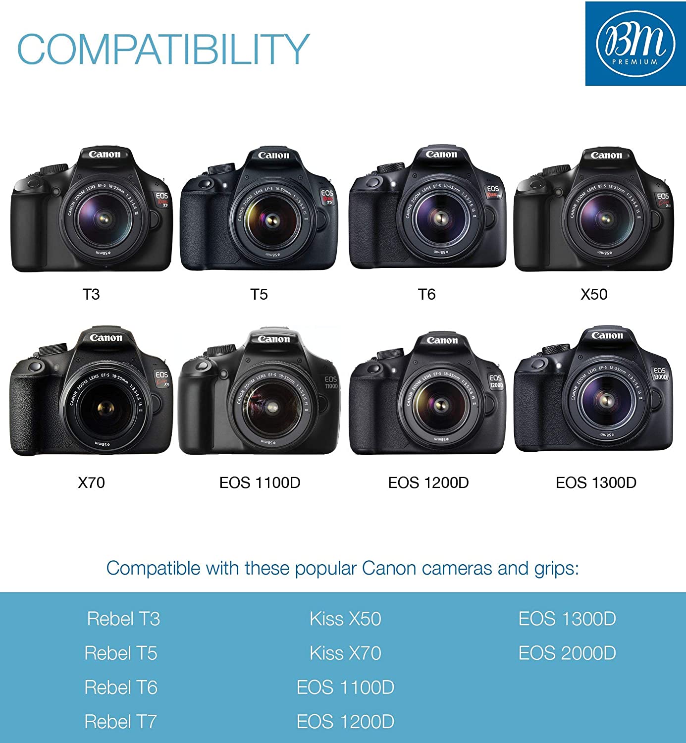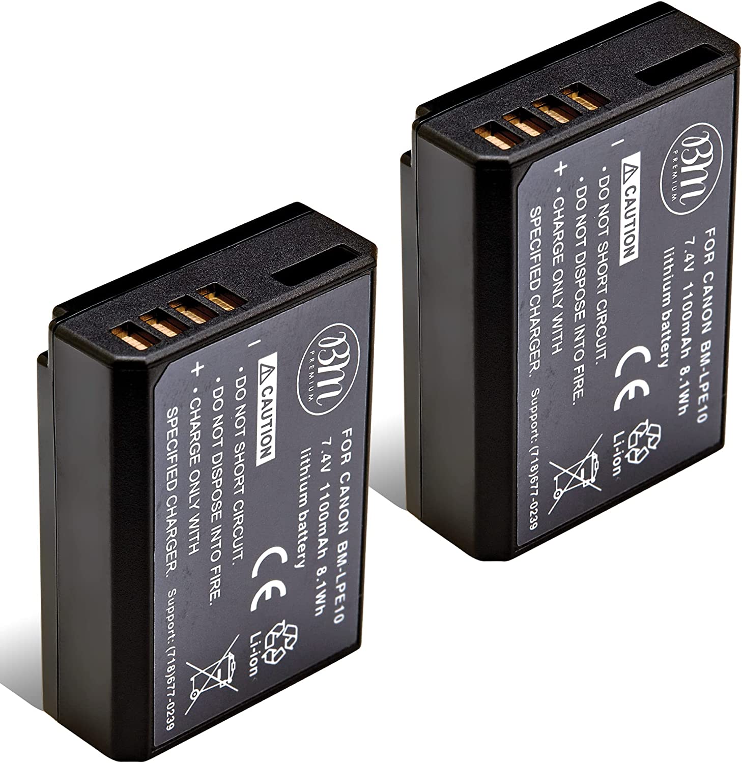 BM Premium 2-Pack of LP-E10 Batteries for Canon EOS Rebel T3, T5, T6, T7, Kiss X50, Kiss X70, EOS 1100D, EOS 1200D, EOS 1300D, EOS 2000D Digital Camera