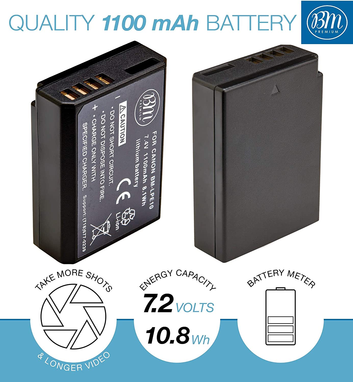 • LP-E10 Li-ion Battery for Canon EOS Rebel T3, T5, T6, T7, Kiss X50, Kiss X70, T100, EOS 1100D, EOS 1200D, EOS 1300D, EOS 1500D, EOS 2000D, EOS 3000D EOS 4000D Digital Cameras