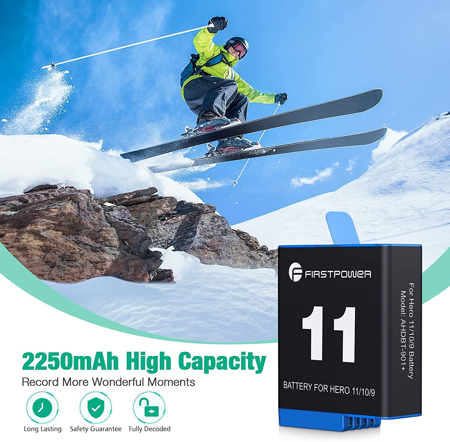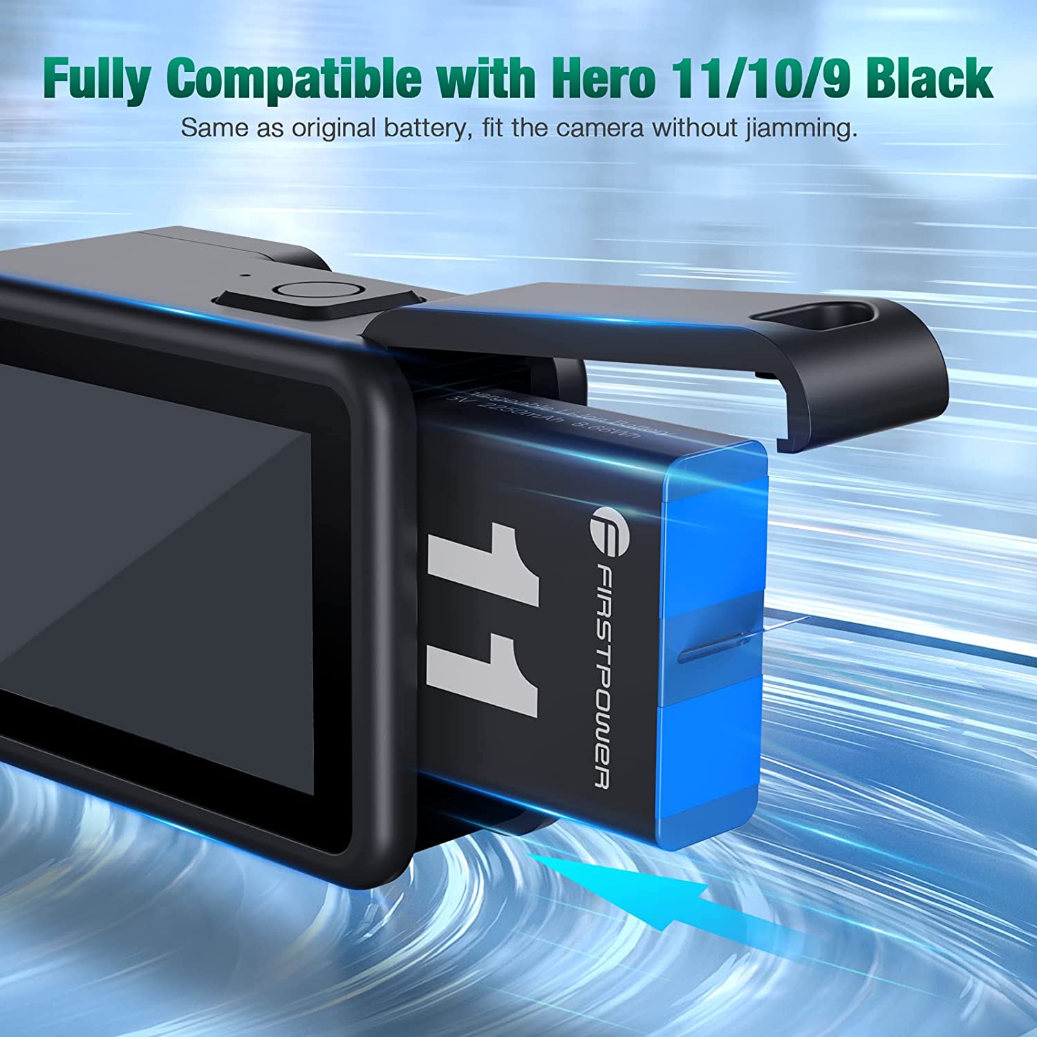 FirstPower Hero 11/10/9 Battery 3-Pack 2250mAh and Triple Slot USB Fast Charger for GoPro Hero 11 Black, GoPro Hero 10 Black, GoPro Hero 9 Black, Fully Compatible with GoPro9 GoPro10 GoPro11 Original