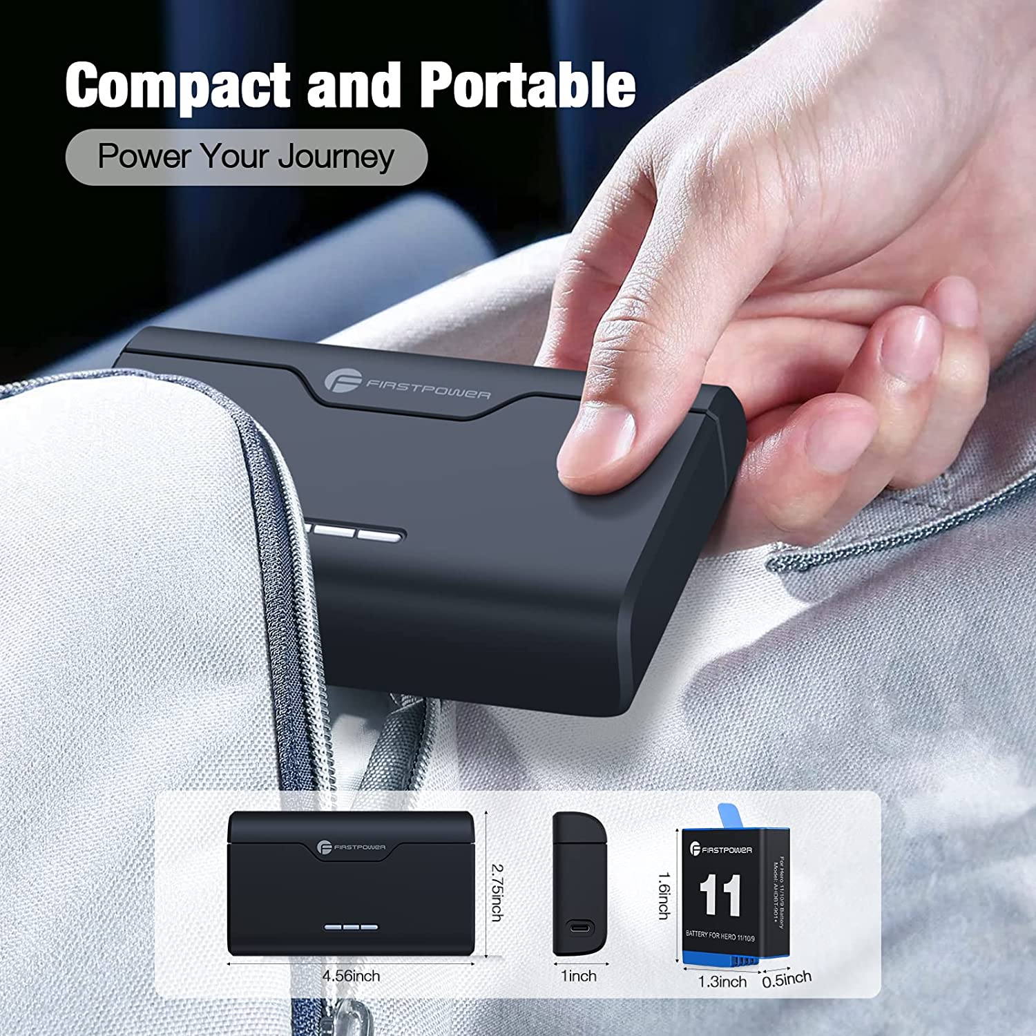 • 【Wide Compatibility】FirstPower Hero 11/10/9 replacement battery fully compatible with GoPro Hero 11 black, GoPro Hero 10 black, Hero 9 black, same design as the GoPro battery. 3-channel fast charger specially designed for GoPro Hero 11/10/9/8/7/6/5 batteries, supports many models of GoPro camera batteries.