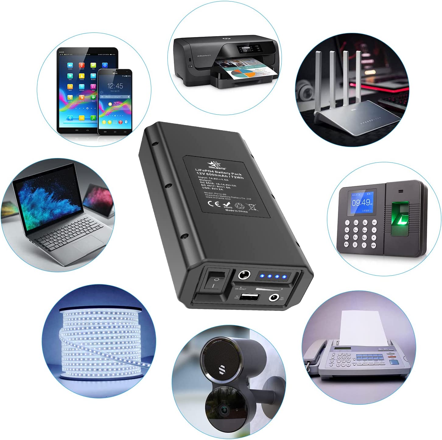 • Widely Compatible: 12v portable power pack compatible with wide range of 12V/9V/5V devices. Such as LED Strip, CCTV Camera, electronic organ, Car DVR, speaker, Optical Network Unit, MP3 Player, router, small Bluetooth Amp, electric scooter 12V turn signals, Walkie-Talkies, Portable DVDs, Digital Cameras, binoculars, robotic telescopes etc.