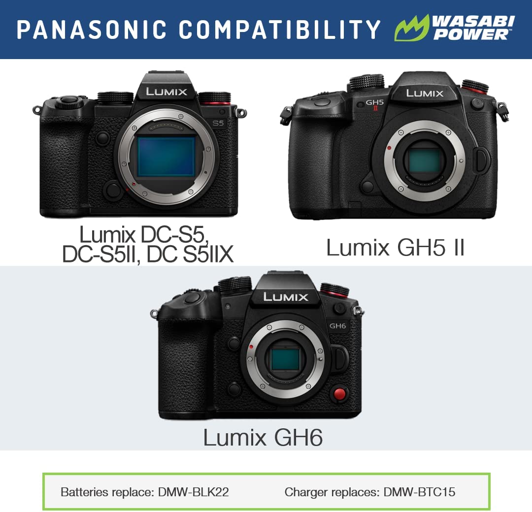 • COMPATIBILITY - Works with these popular Panasonic cameras that use DMWBLK22 batteries: Lumix GH5 II, GH6, DC-S5, DC-S5II, DC-S5IIX, DC-S5KK