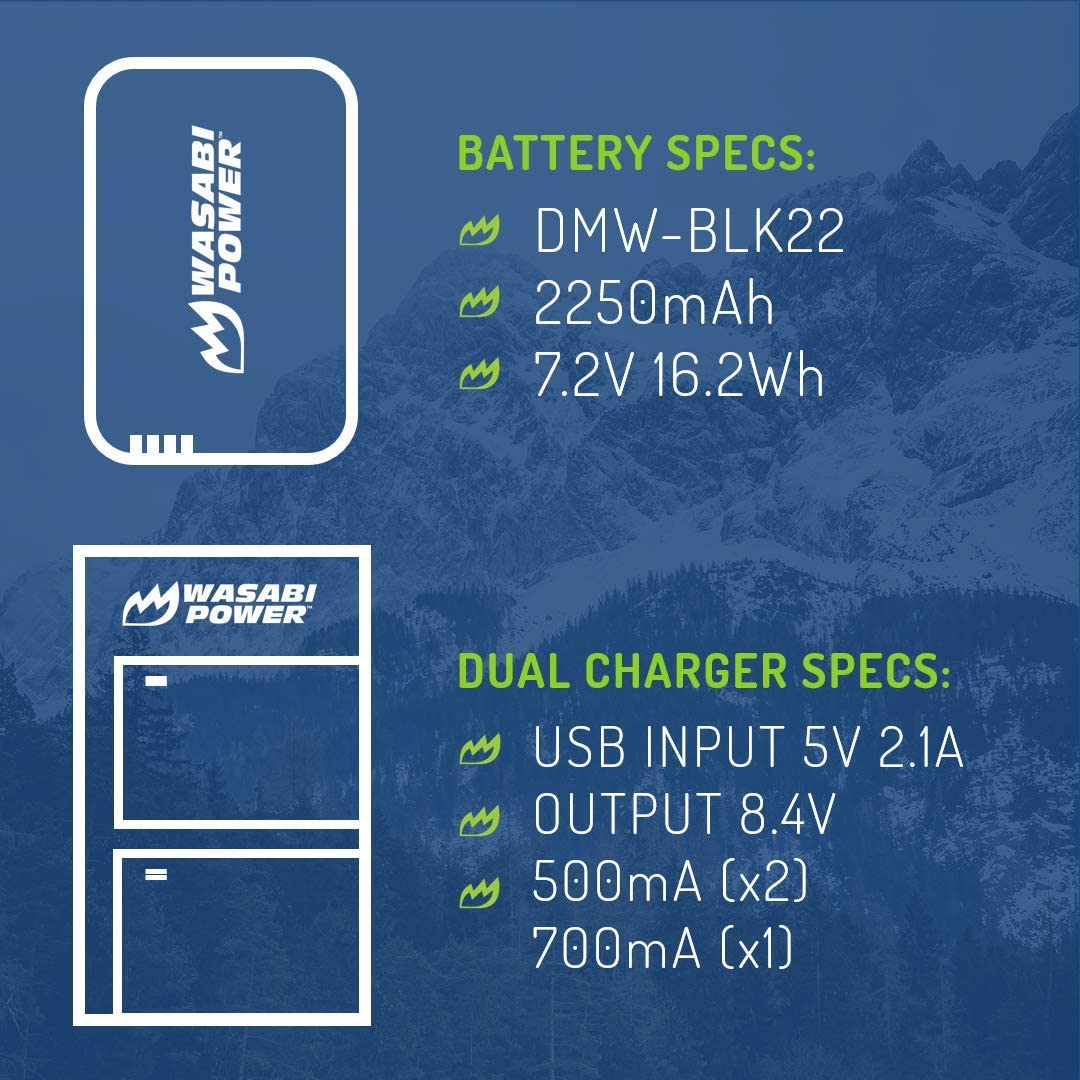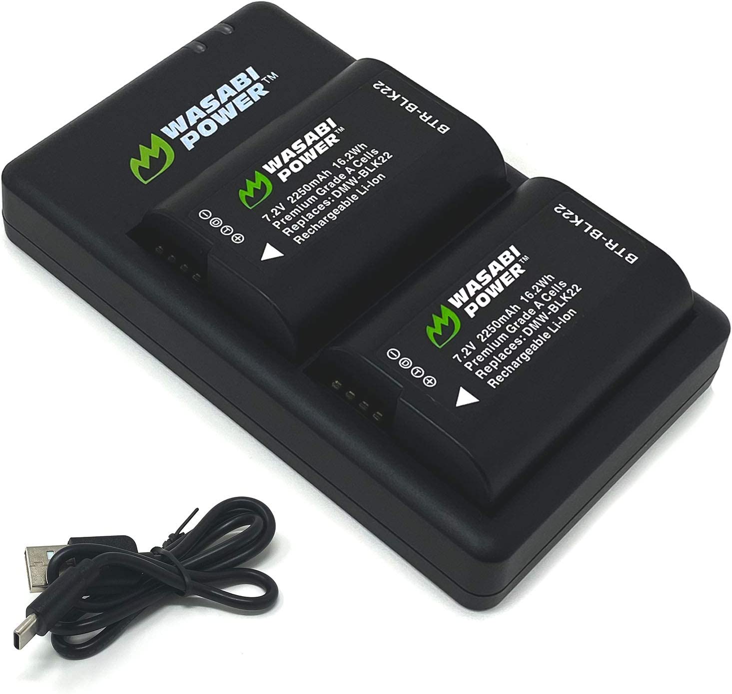 Wasabi Power Battery (2-Pack) and USB-C Dual Battery Charger for Panasonic DMW-BLK22 and Panasonic Lumix DC-S5, DC-S5 II, DC-S5 IIX, GH5 II, GH6, S5II, S5IIX, S5M2, S5M2X, GH5M2