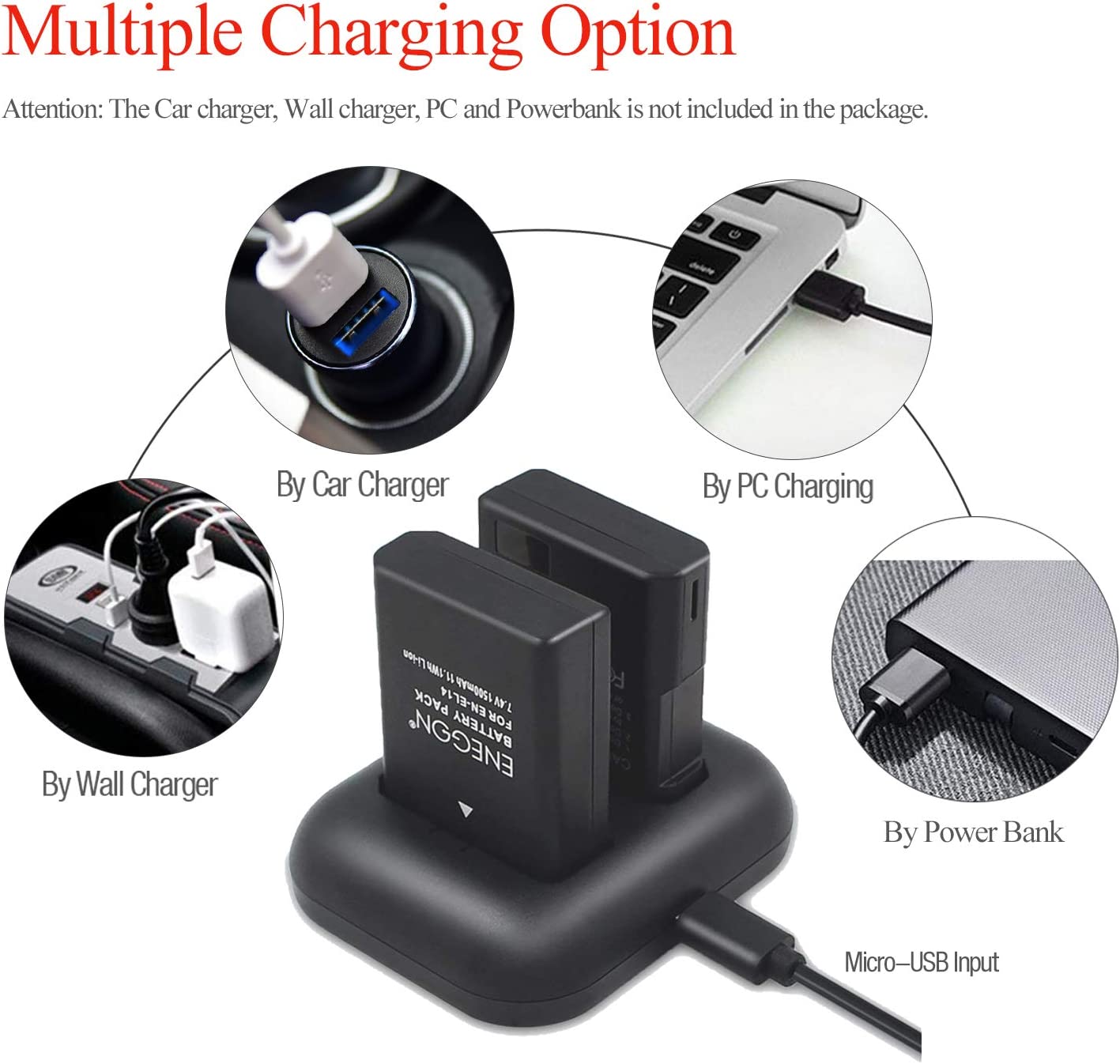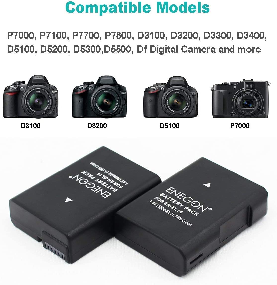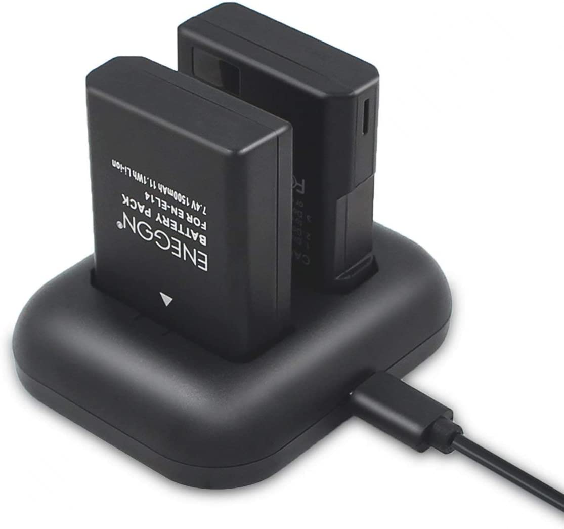 ENEGON EN-EL14/14a Replacement Battery (2-Pack) and Rapid Dual Charger Kit for Nikon EN-EL14/14a (100% Compatible with Original) and Coolpix P7000, P7100, P7700, P7800 DSLR D3100,D3200,D3300,D3400.