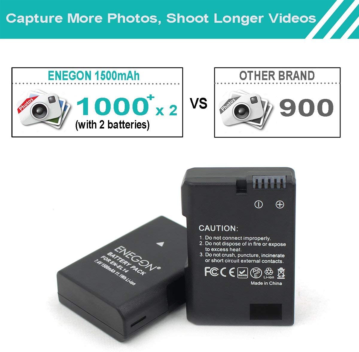 • 【HIGH CAPACITY & QUALITY】Premium cells create quality batteries. 1500mAh High capacity bring you longer video recording and more photo shoot