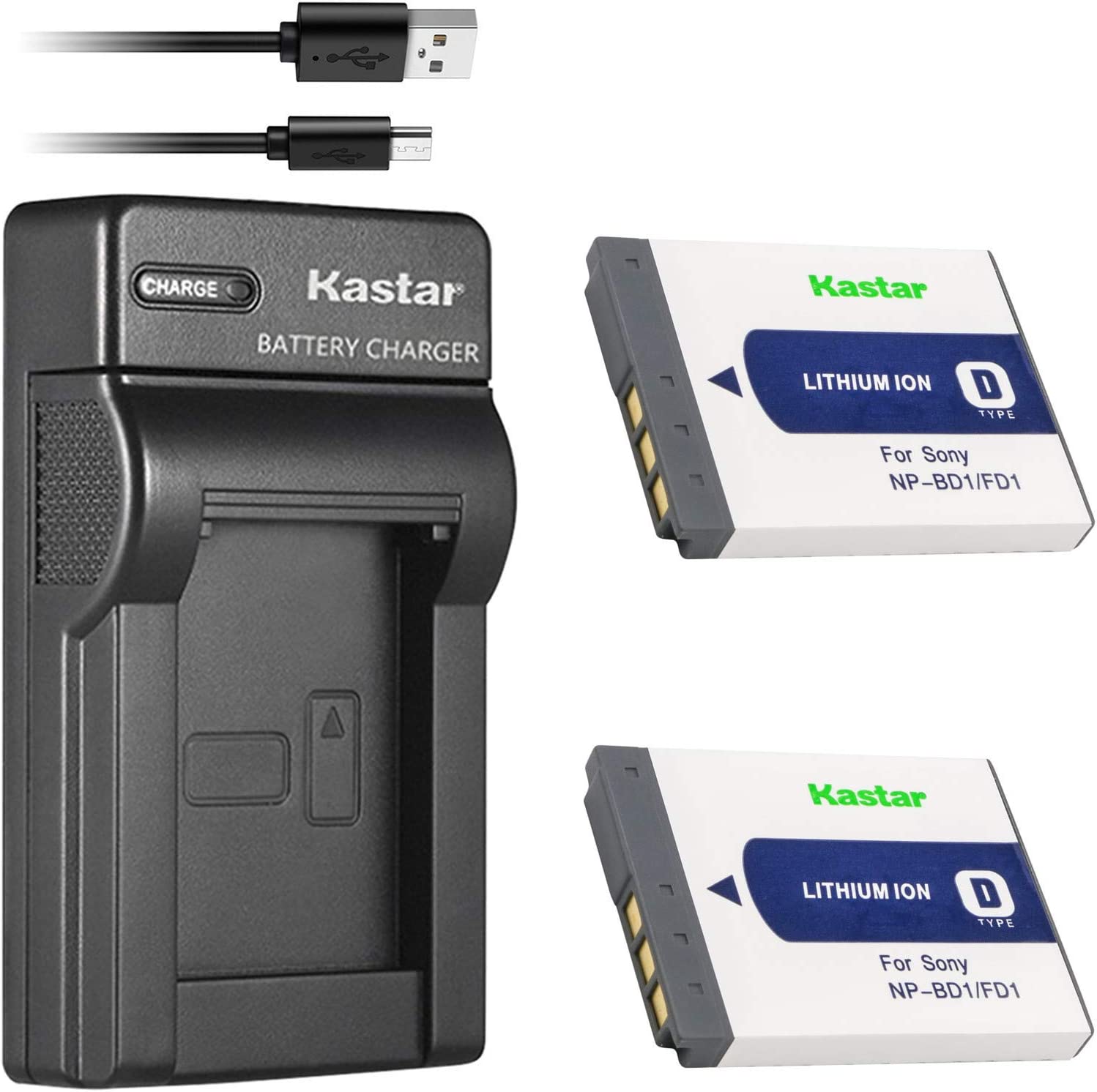 Kastar Battery (X2) & Slim USB Charger for Sony NP-BD1, NP-FD1, BC-CSD and Cyber-Shot DSC-G3, DSC-T2, DSC-T70, DSC-T75, DSC-T77, DSC-T90, DSC-T200, DSC-T300, DSC-T500, DSC-T700, DSC-T900, DSC-TX1