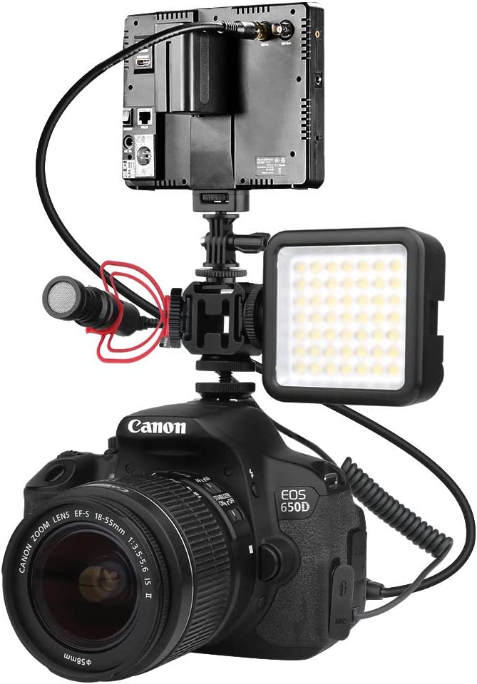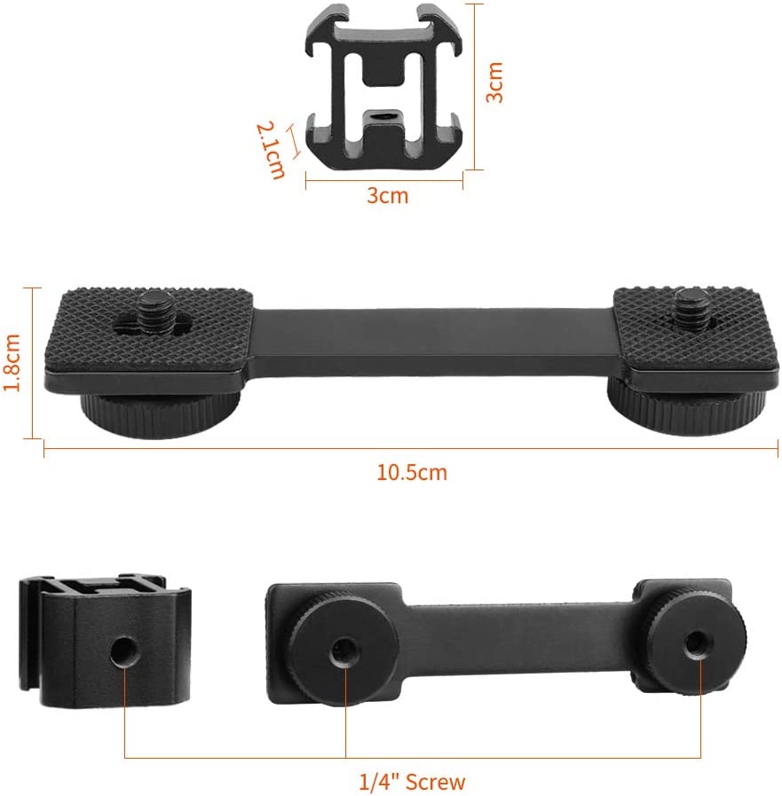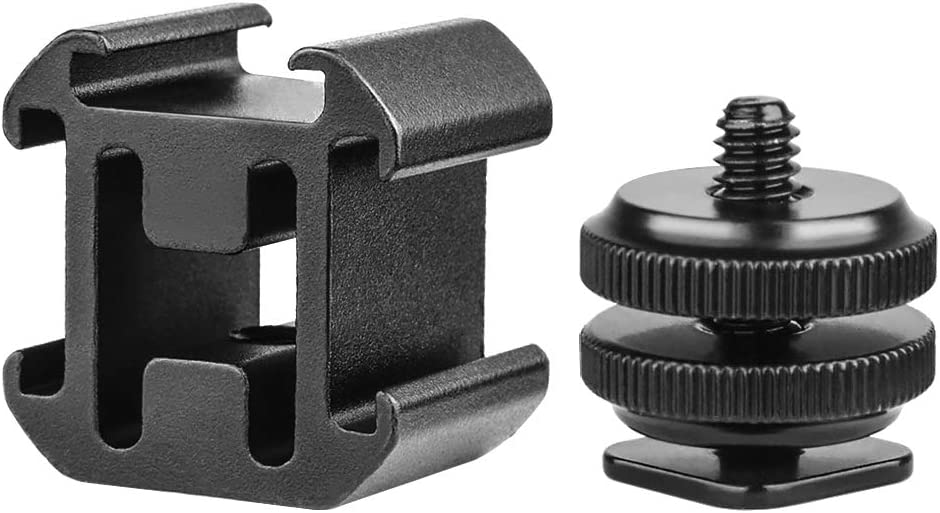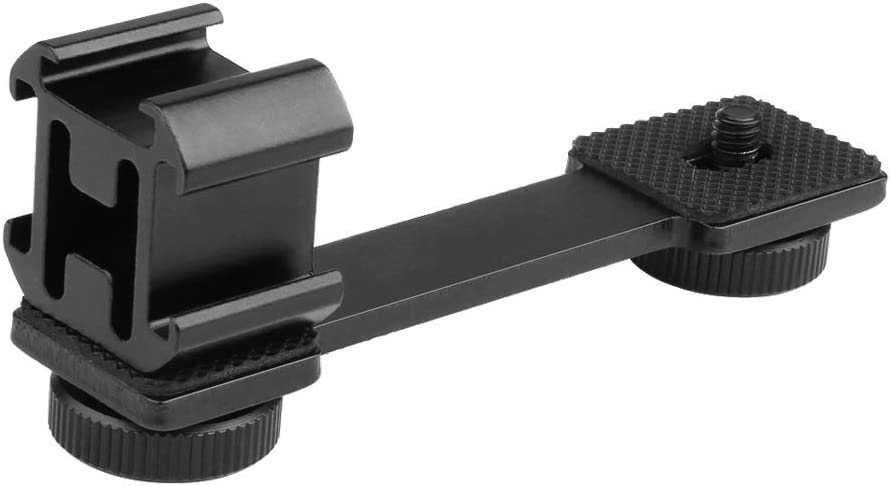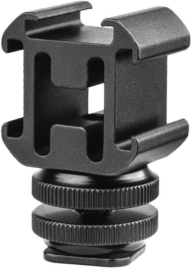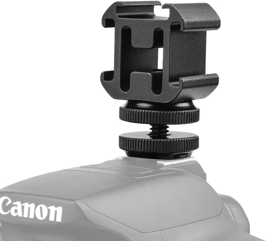 • Allows the use of multiple shoe mount accessories at the same time, Compatible with speedlights and microphone receivers with standard hot shoe like Canon, Nikon, Pentax, Olympus flash units and Zoom audio recorders