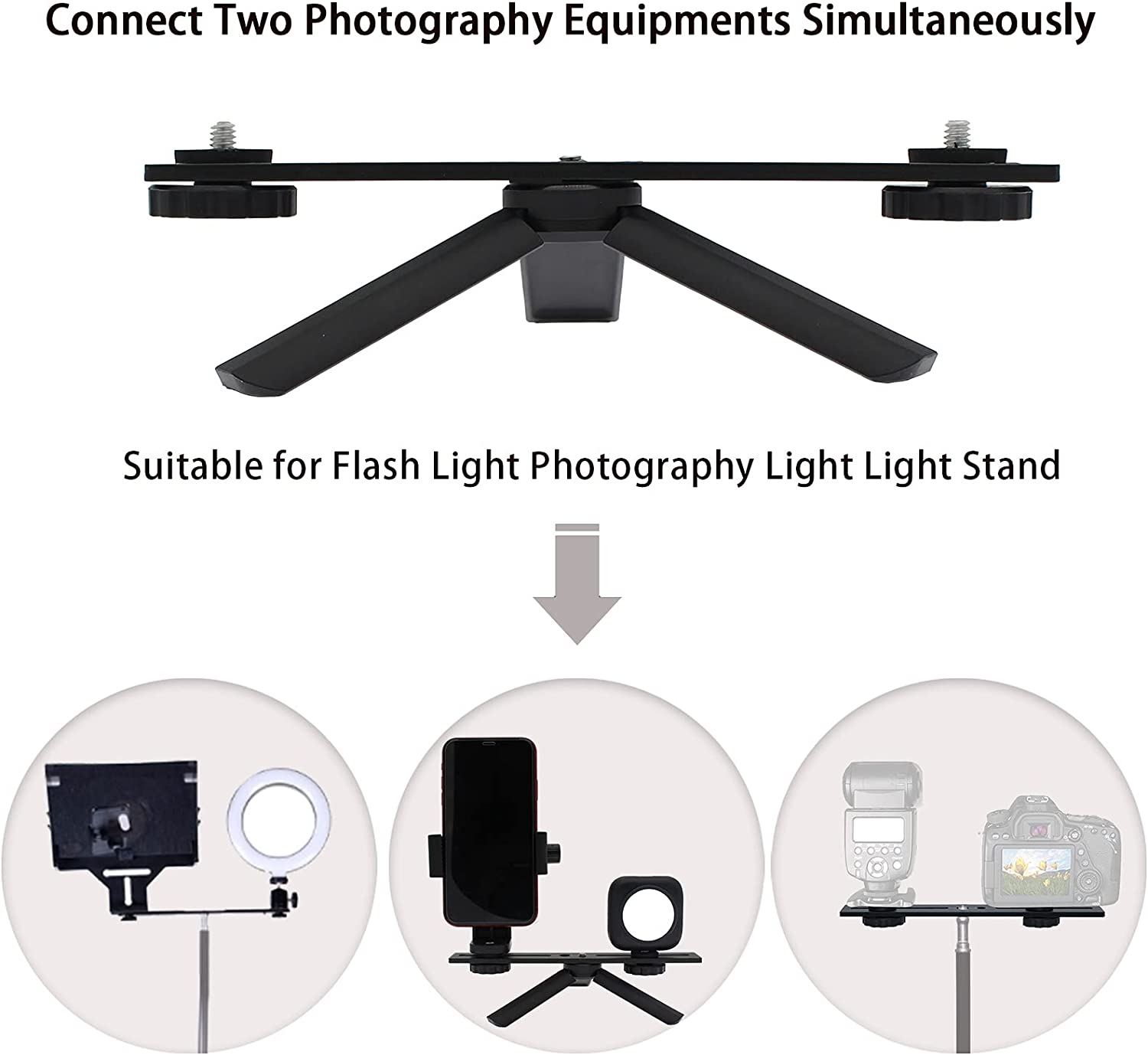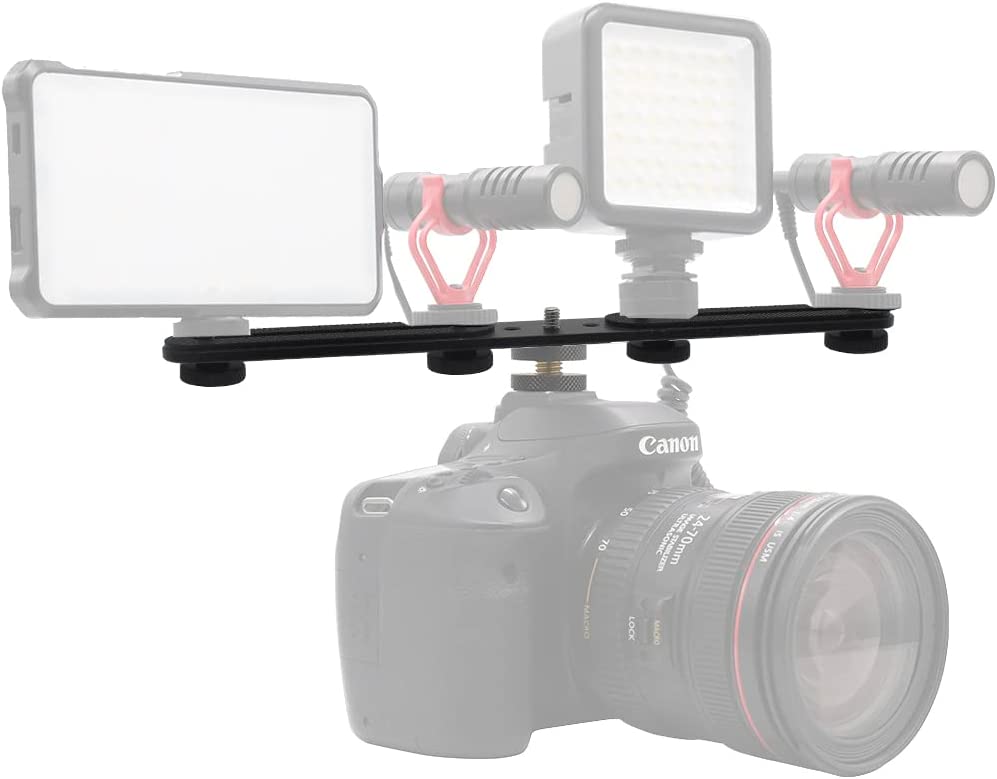 Zeetain 30cm Dual Speedlite Camera Mount Tripod Bracket Flash Extension Bar,10" Dual Tripod Bracket for Camera,LED Video Light,DSLR Camera,Flash Light