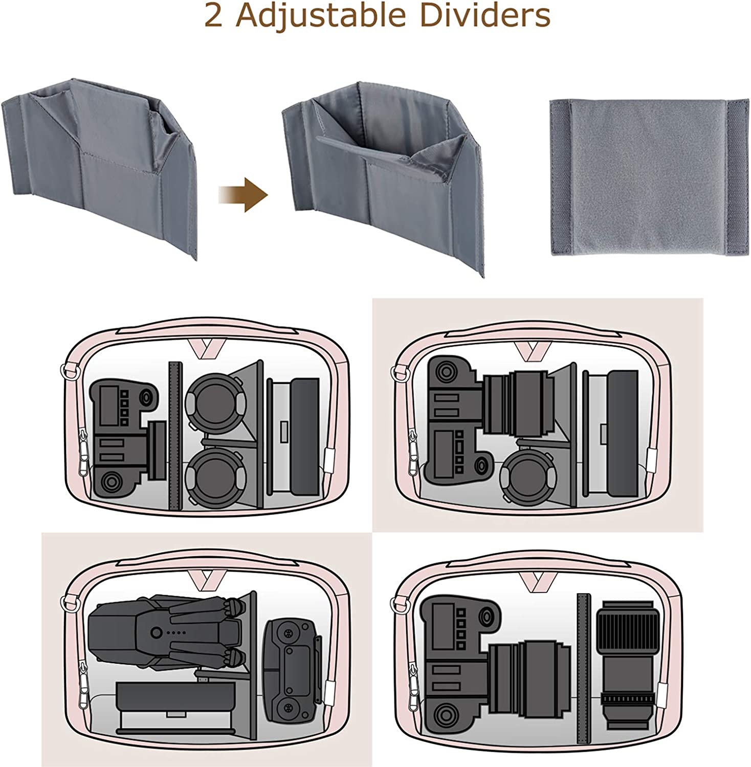 • Customizable Space- Two removable padded dividers to keep camera kit separated and protected, allow you to customize interior space for different size of camera equipment.
