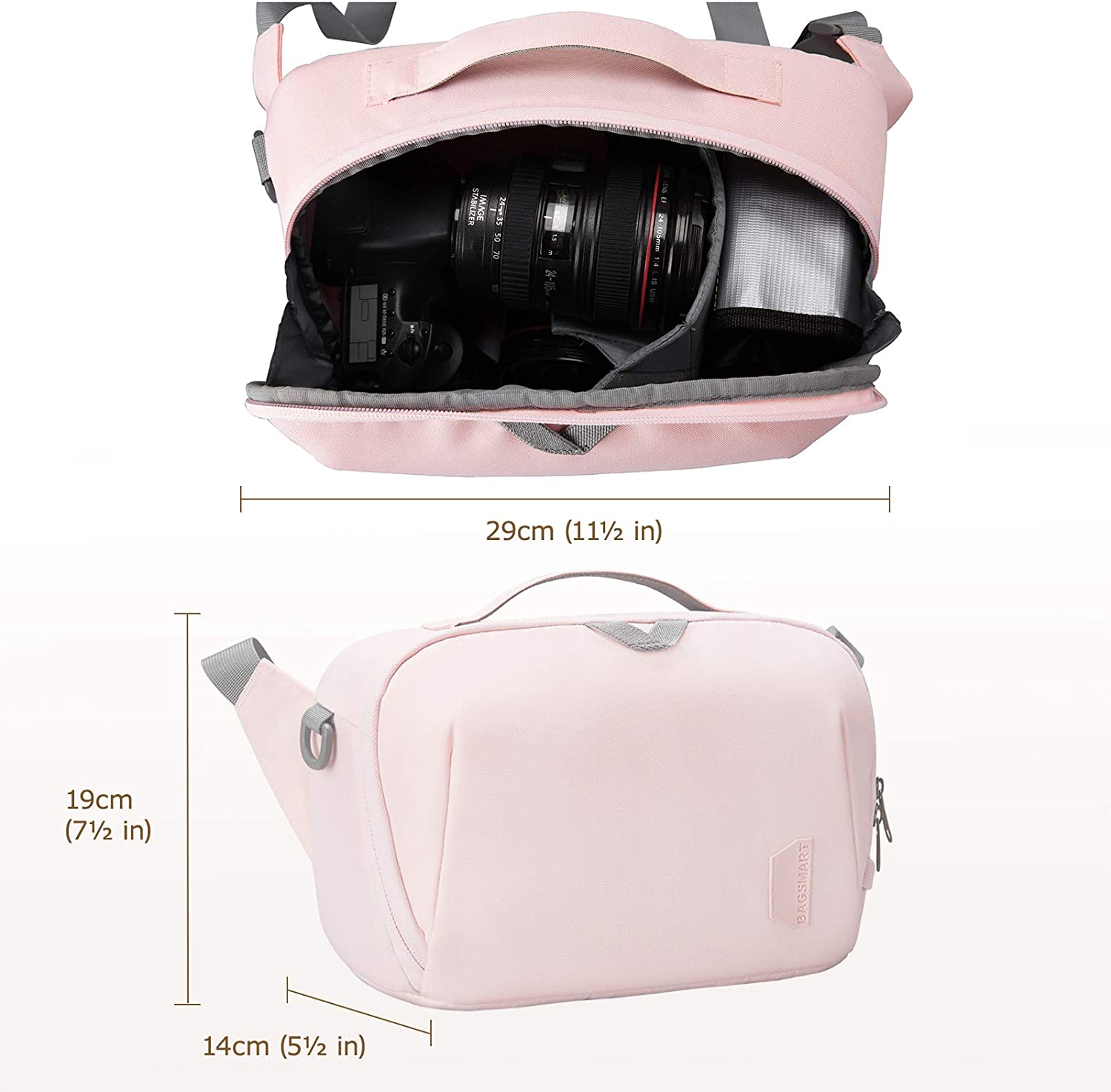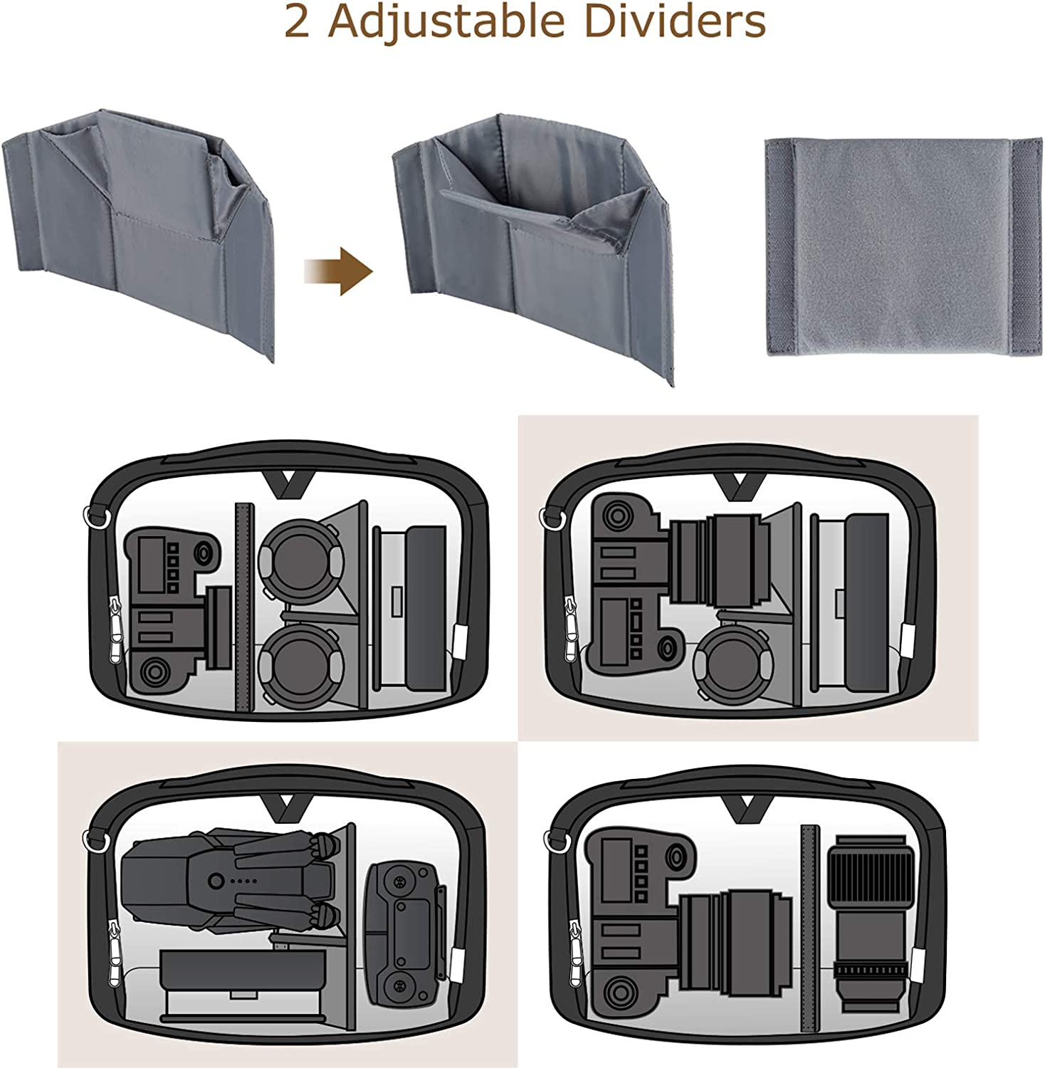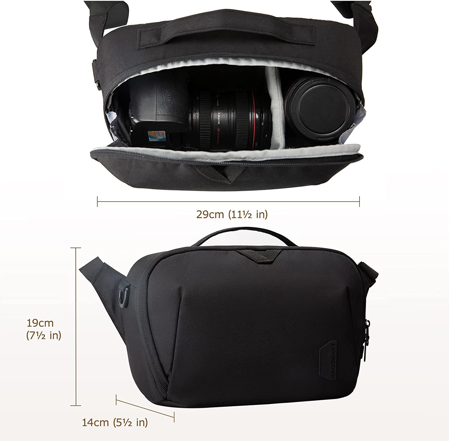 • Convenient Design- Adjustable padded shoulder strap and top handle provide comfort and versatility. It can be served as a camera sling bag, as well as a camera cross-body bag, camera shoulder bag for women and men. Removing inner dividers can easily convert from a camera bag into an everyday shoulder bag.