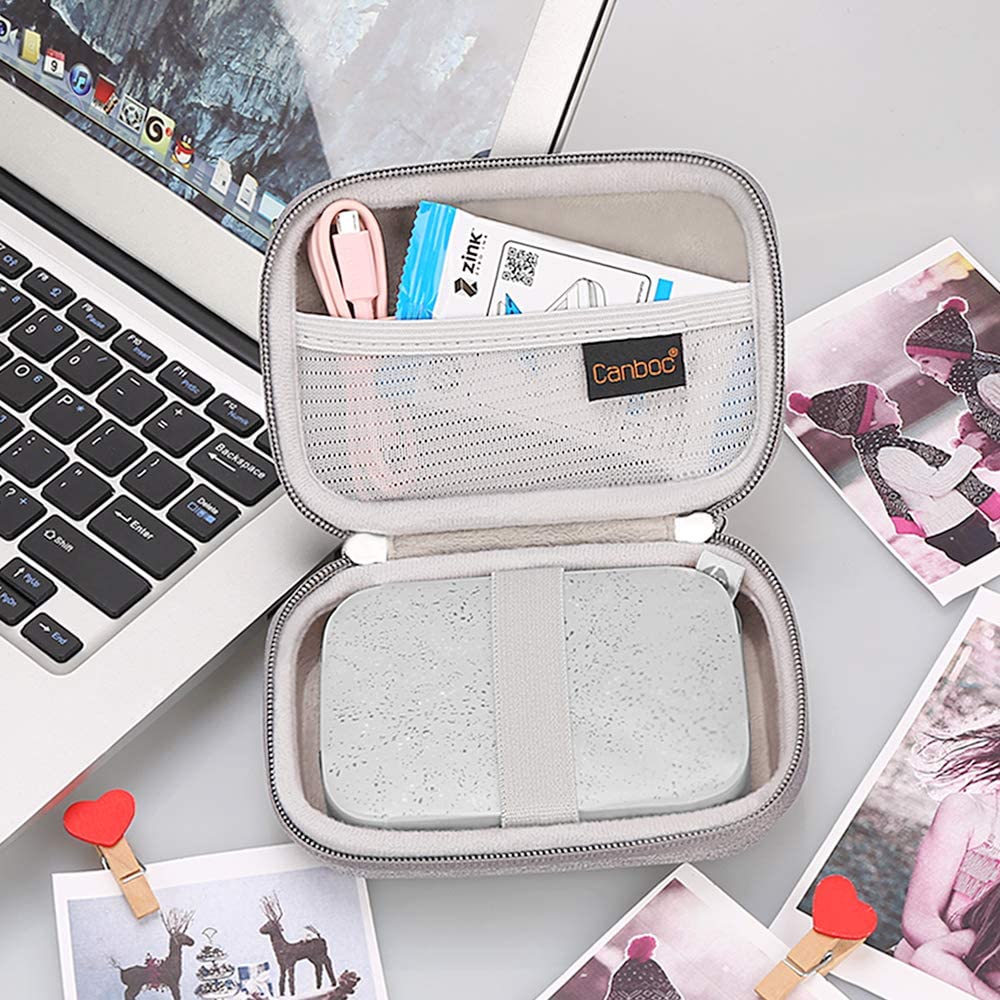 Canboc Hard Case for HP Sprocket Portable 2x3 Instant Photo Printer, KODAK Step Wireless Mobile Photo Mini Printer, Lifeprint 2x3 Photo and Video Printer, Mesh Bag fit Zink Photo Paper, Cable, Grey