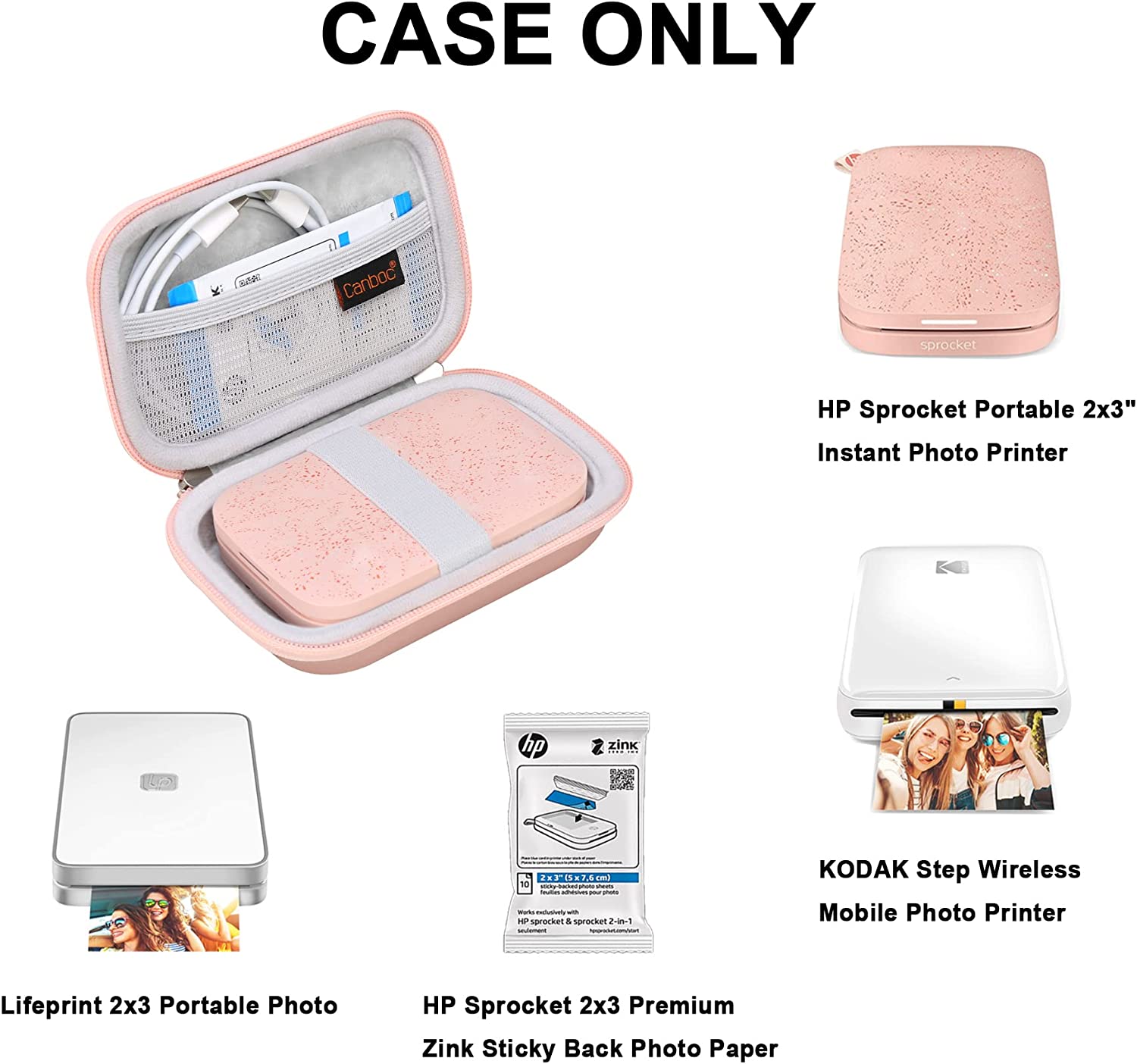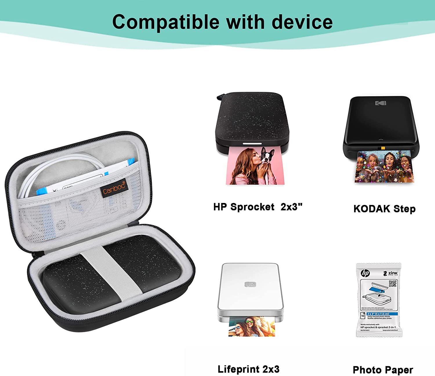 • 【Perfect Storage】CASE ONLY! (Printer and accessories are not included). HP sprocket case compatible with HP sprocket 2nd Edition portable 2x3" instant photo printer, KODAK step wireless mobile photo mini printer, Lifeprint 2x3 portable photo and video printer, Liene 2x3" mini instant portable photo printer, mesh pocket fit photo paper and cable.