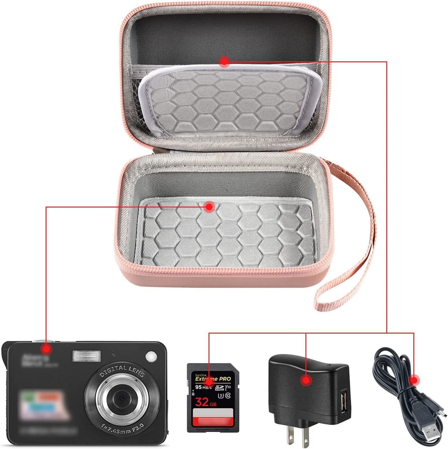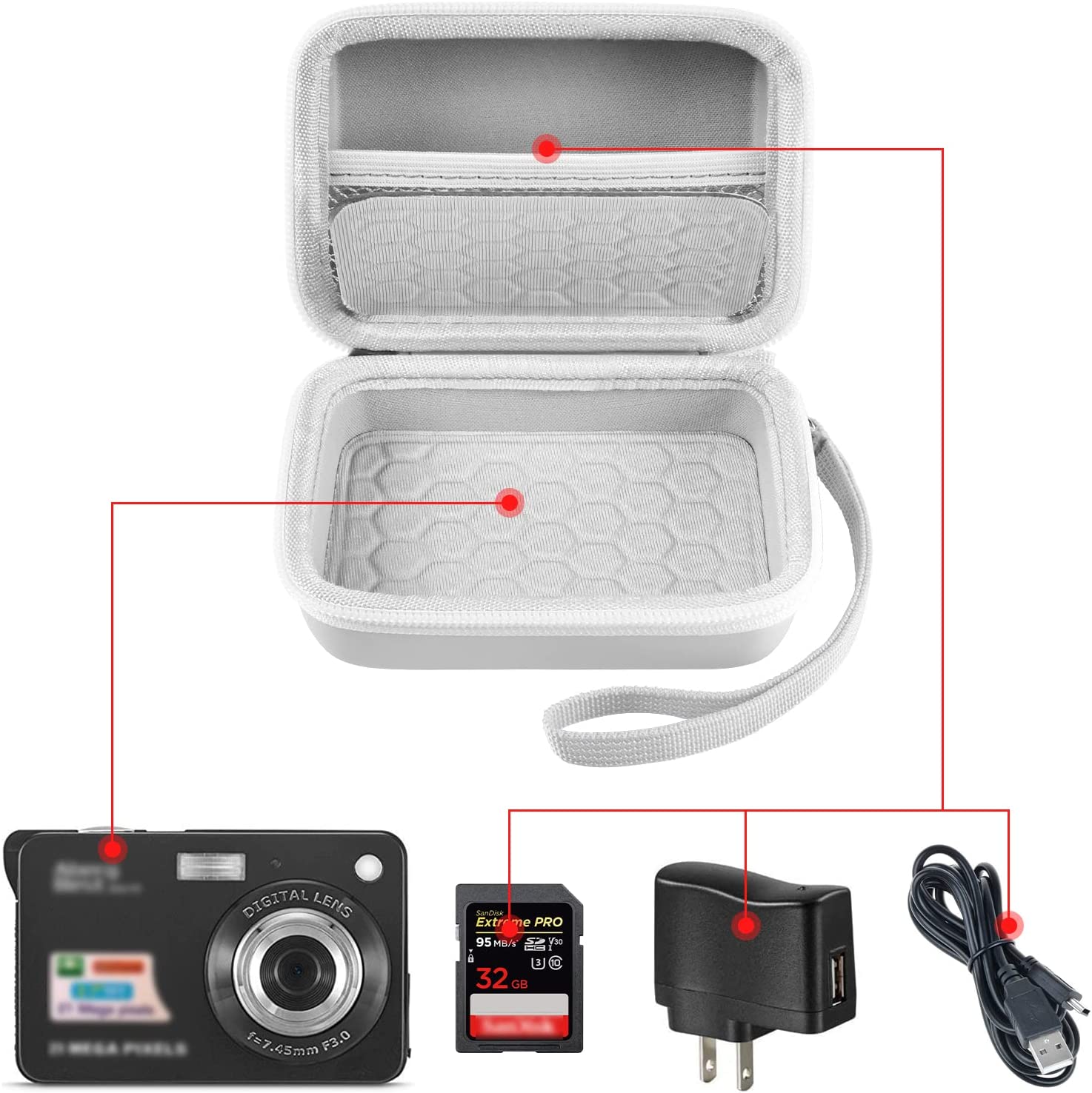 • ◆Simple and Comprehensive Storage Environment: It can accommodate the student digital camera with the limiting size of 4.9 in*3.5 in* 2.2 in, charger and USB cable, to meet your various kinds of needs.(case only)