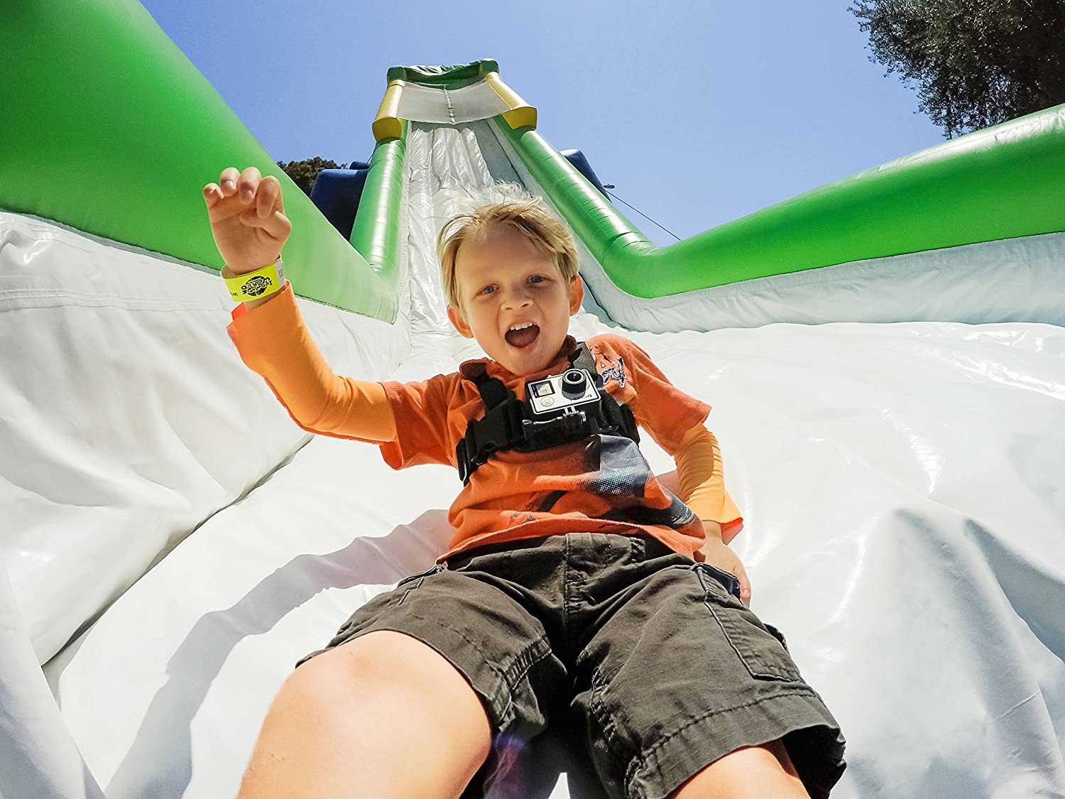 Includes a head strap and a quick clip for a variety of head- mounting options. Fully adjustable to fit all sizes, The head strap can be worn over a helmet or directly on your head to capture footage from a headlamp-like perspective. The quick clip enables ultra-compact, low-profile mounting, and can be used to attach your GoPro to a backwards baseball cap or other 3mm to 10mm thick object.