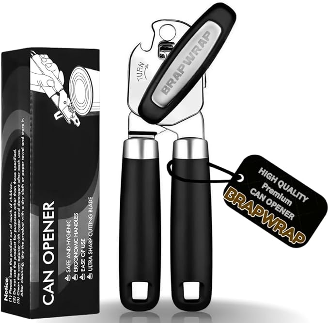Can Opener Manual, Heavy Duty Stainless Steel Can Opener, Hand Held Can Opener With Soft Touch Handle, Multifunctional Easy Turn Knob Bottle Opener, Large Lid Openers, Black