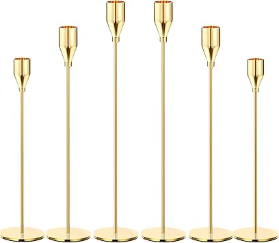 6Pcs Lemon Gold Candle Holders, Set of 6 Tall Taper Gold Candlestick fit 3/4" Thick Pillar Candle Led Modern Metal Candles, Elegant Stands Decorative Table Centerpieces for Dinning Party Decorative